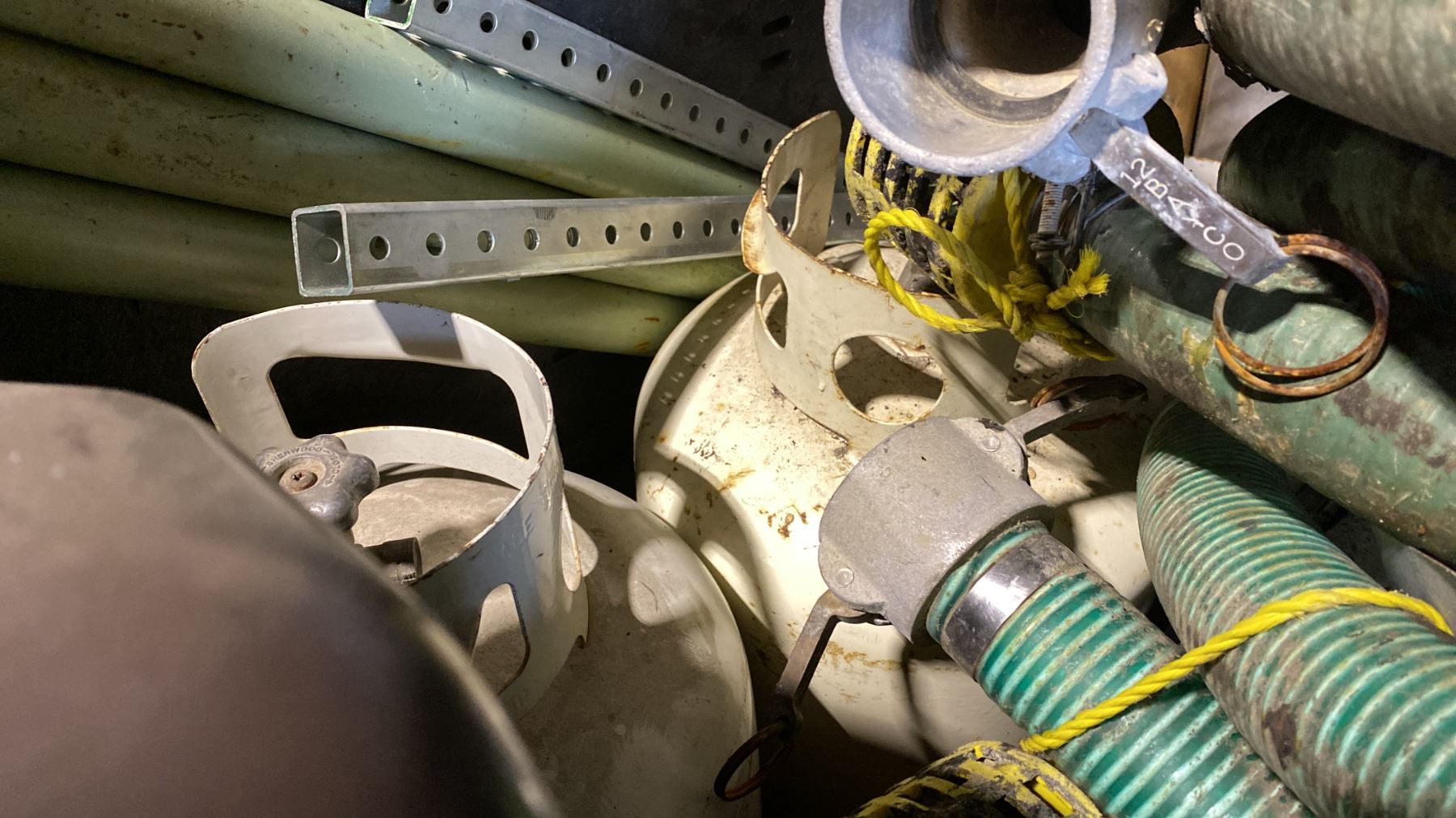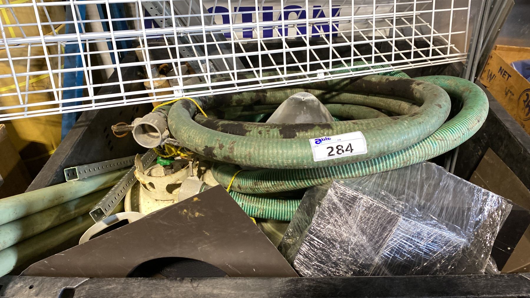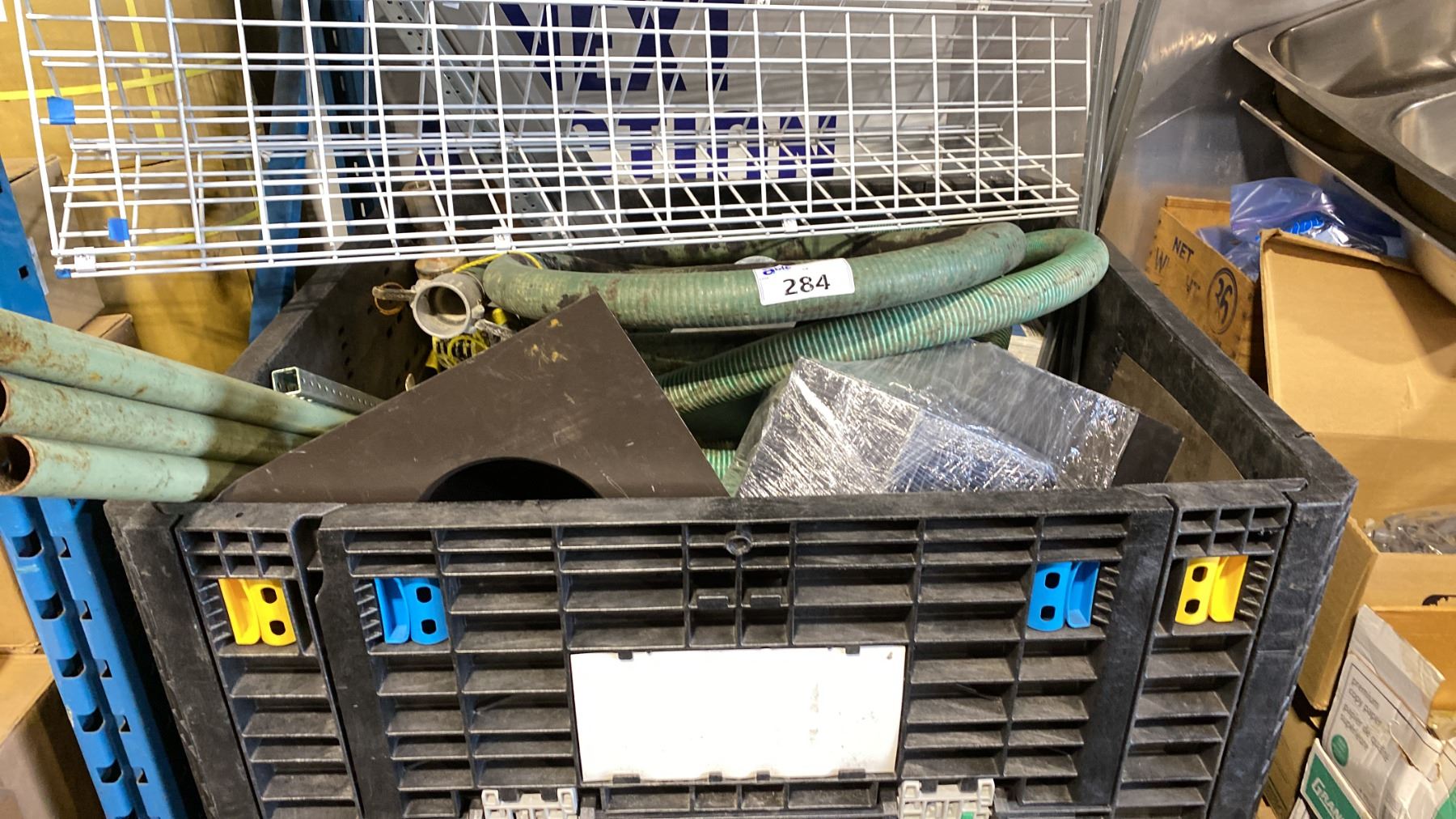 PALLET CRATE OF ASSORTED INDUSTRIAL HOSES, SORTING BINS, PROPANE TANKS & INDUSTRIAL PRODUCT *PALLET CRATE NOT INCLUDED*