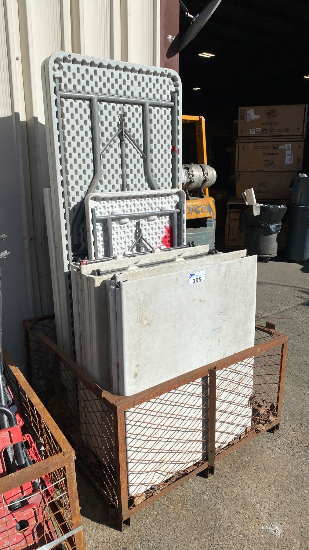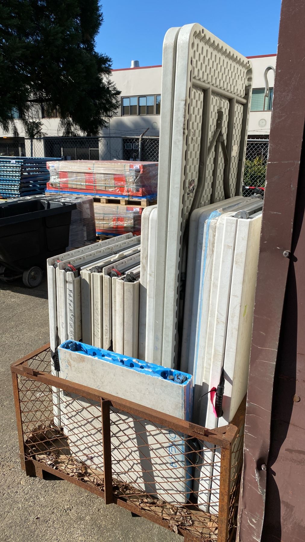 PALLET CRATE OF ASSORTED SIZE FOLDING TABLES *CRATE INCLUDED*
