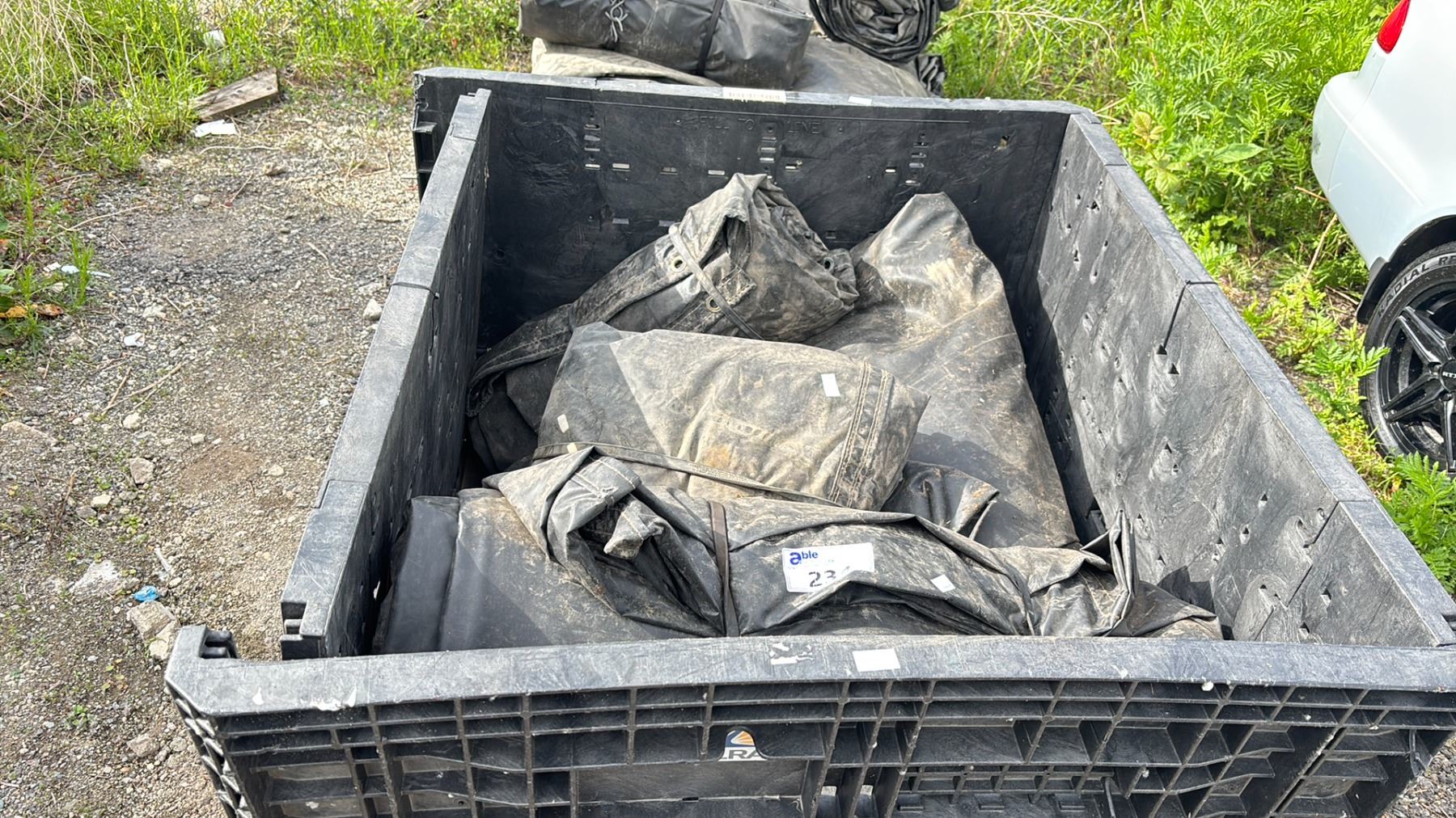 PALLET CRATE OF BLACK HEAVY DUTY TARPS *PALLET CRATE NOT INCLUDED*
