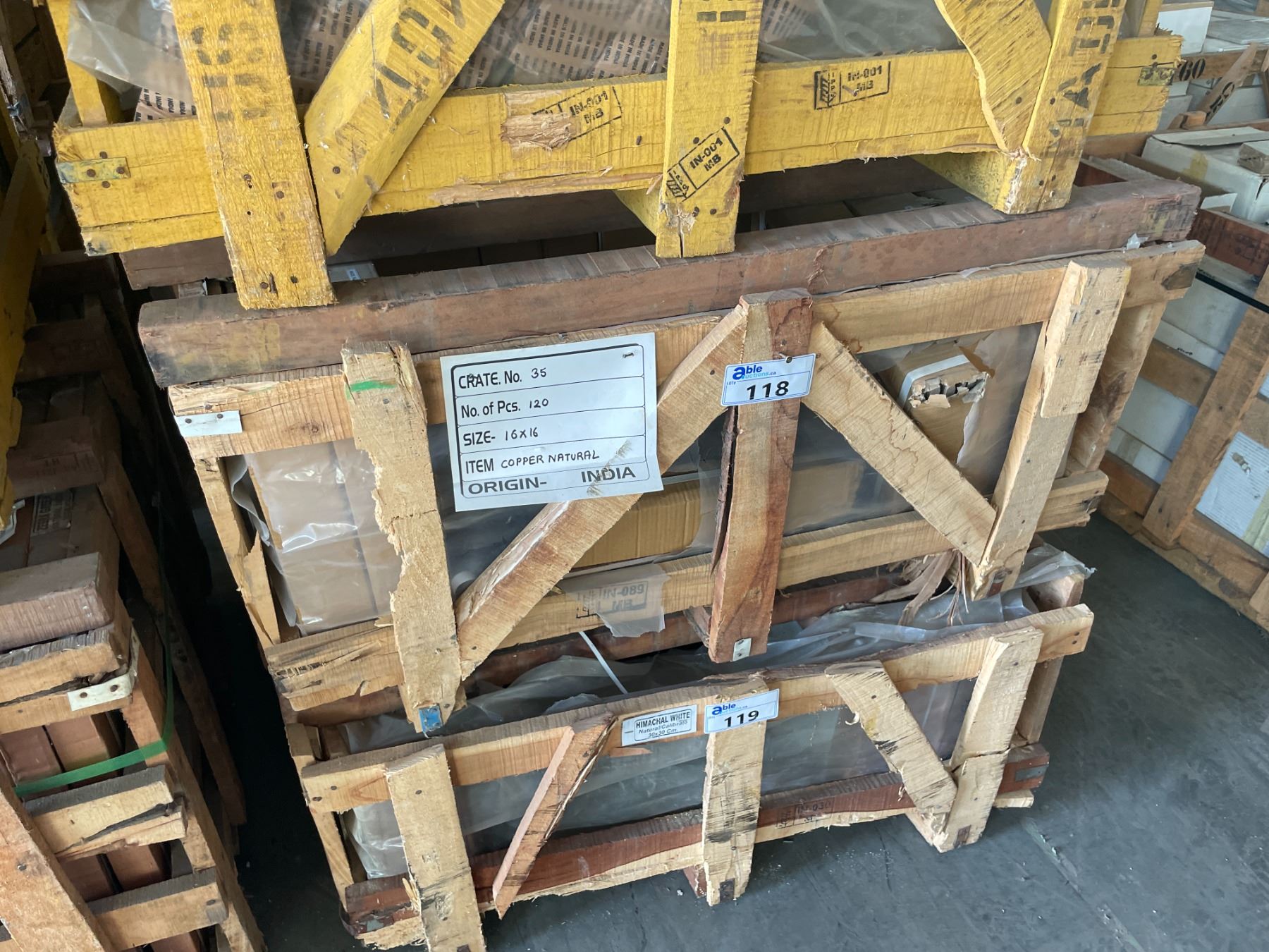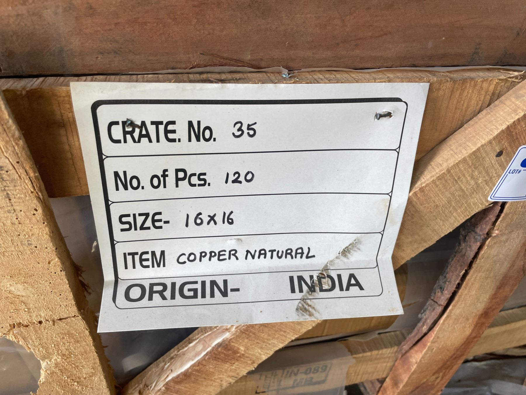 PALLET CRATE OF COPPER NATURAL 16 X 16 NATURAL STONE TILES APPROXIMATELY 120 PCS