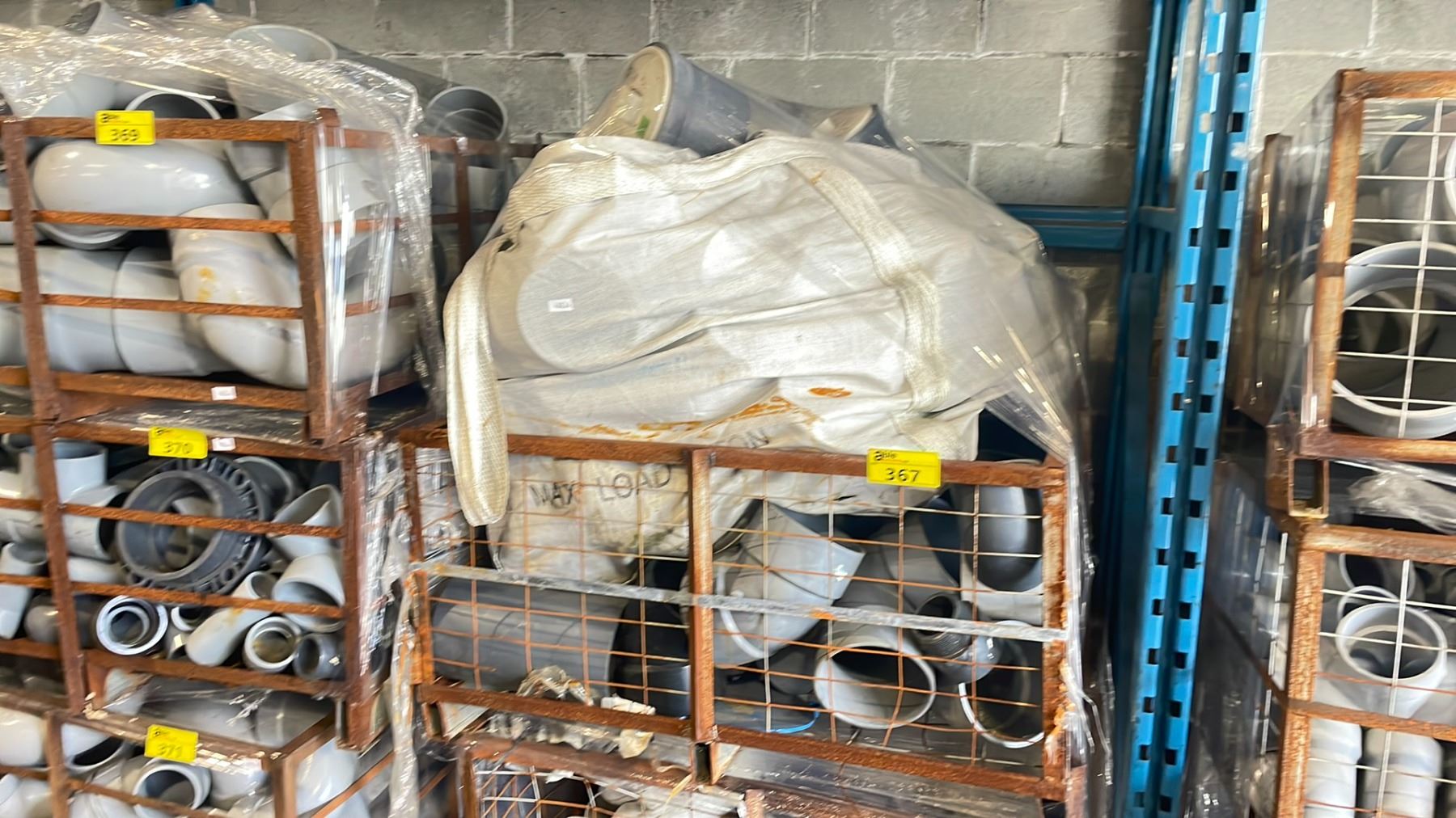 PALLET CRATE OF HEAVY DUTY ASSORTED INDUSTRIAL PVC PLUMBING PARTS & HARDWARE *PALLET CRATE INCLUDED*