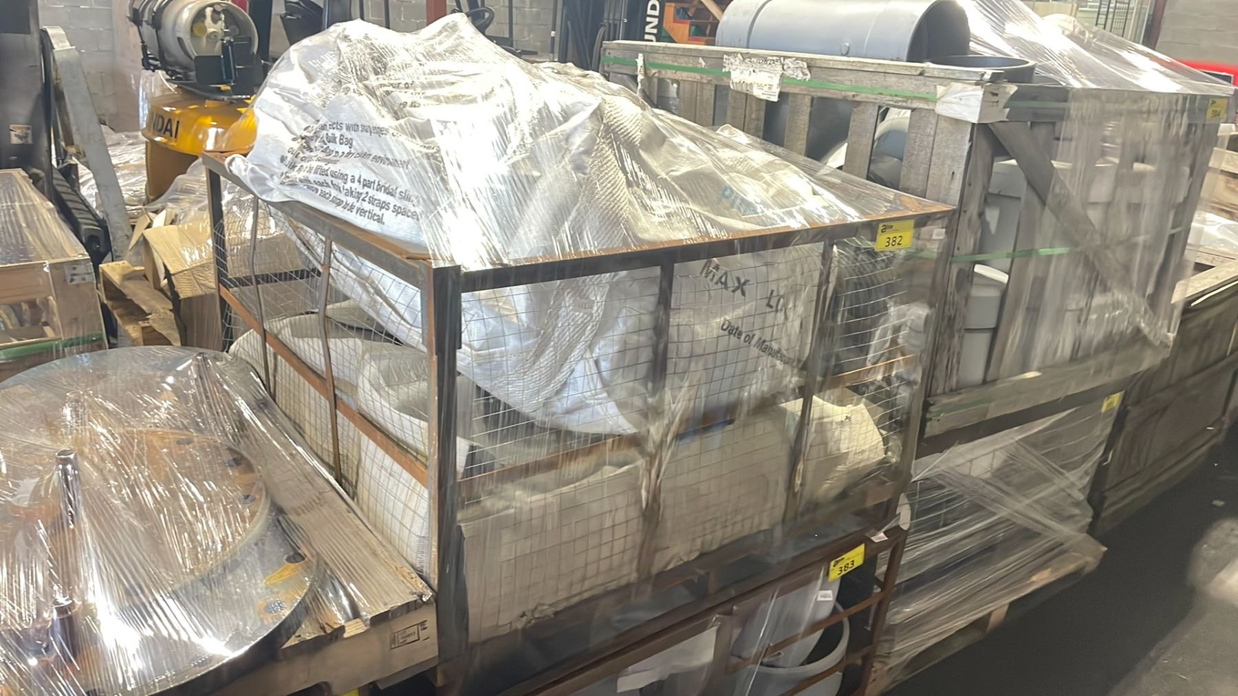 PALLET CRATE OF HEAVY DUTY ASSORTED INDUSTRIAL PVC PLUMBING PARTS & HARDWARE *PALLET CRATE INCLUDED*