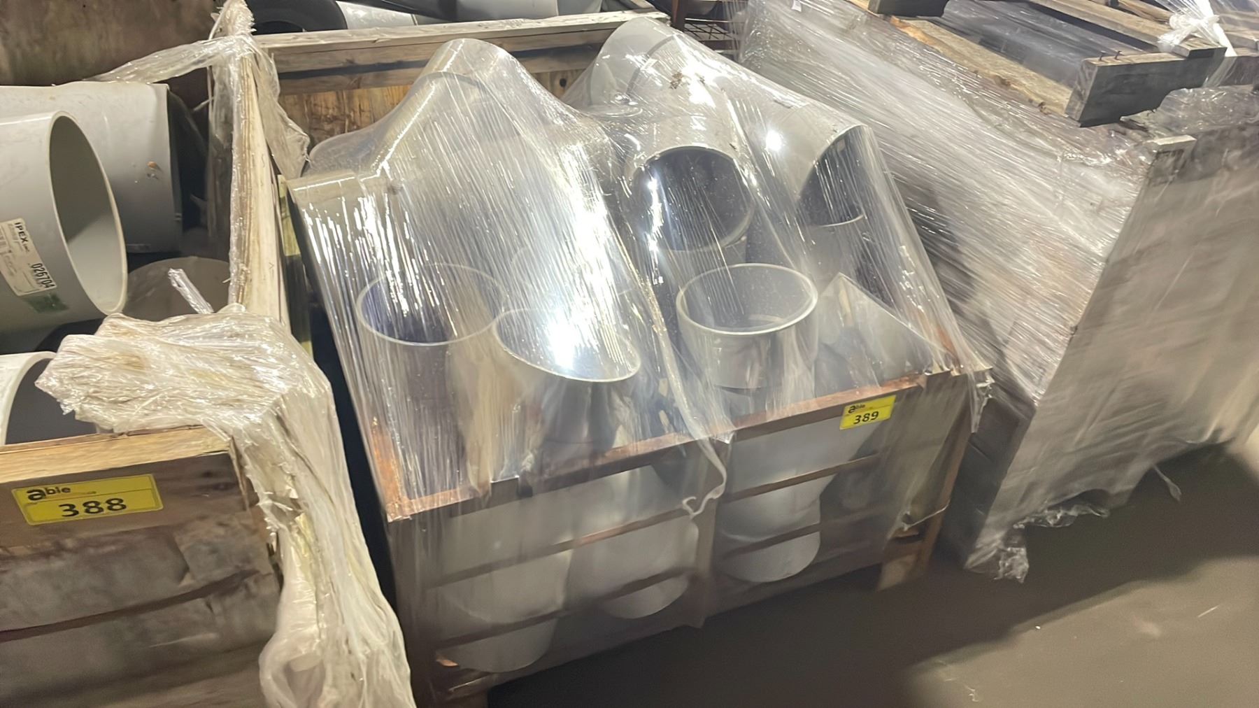PALLET CRATE OF HEAVY DUTY ASSORTED INDUSTRIAL PVC PLUMBING PARTS & HARDWARE *PALLET CRATE INCLUDED*
