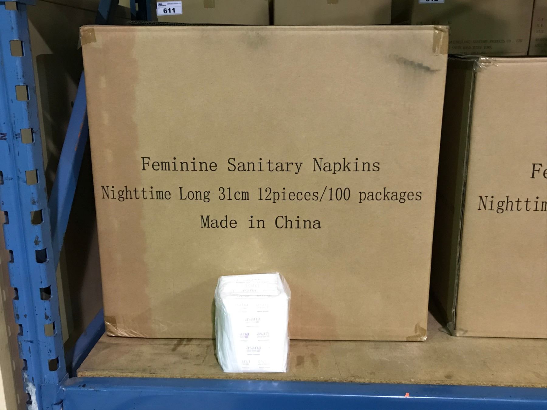 PALLET INCLUDING 16 BOXES OF NIGHTTIME LONG 31CM FEMININE SANITARY NAPKINS 12 PCS / 100 PACKS