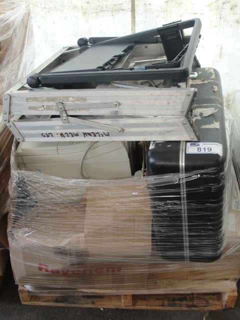 PALLET LOT ASSORTED OFFICE COMPUTERS, SMALL ALUMINUM STEP LADDER ETC