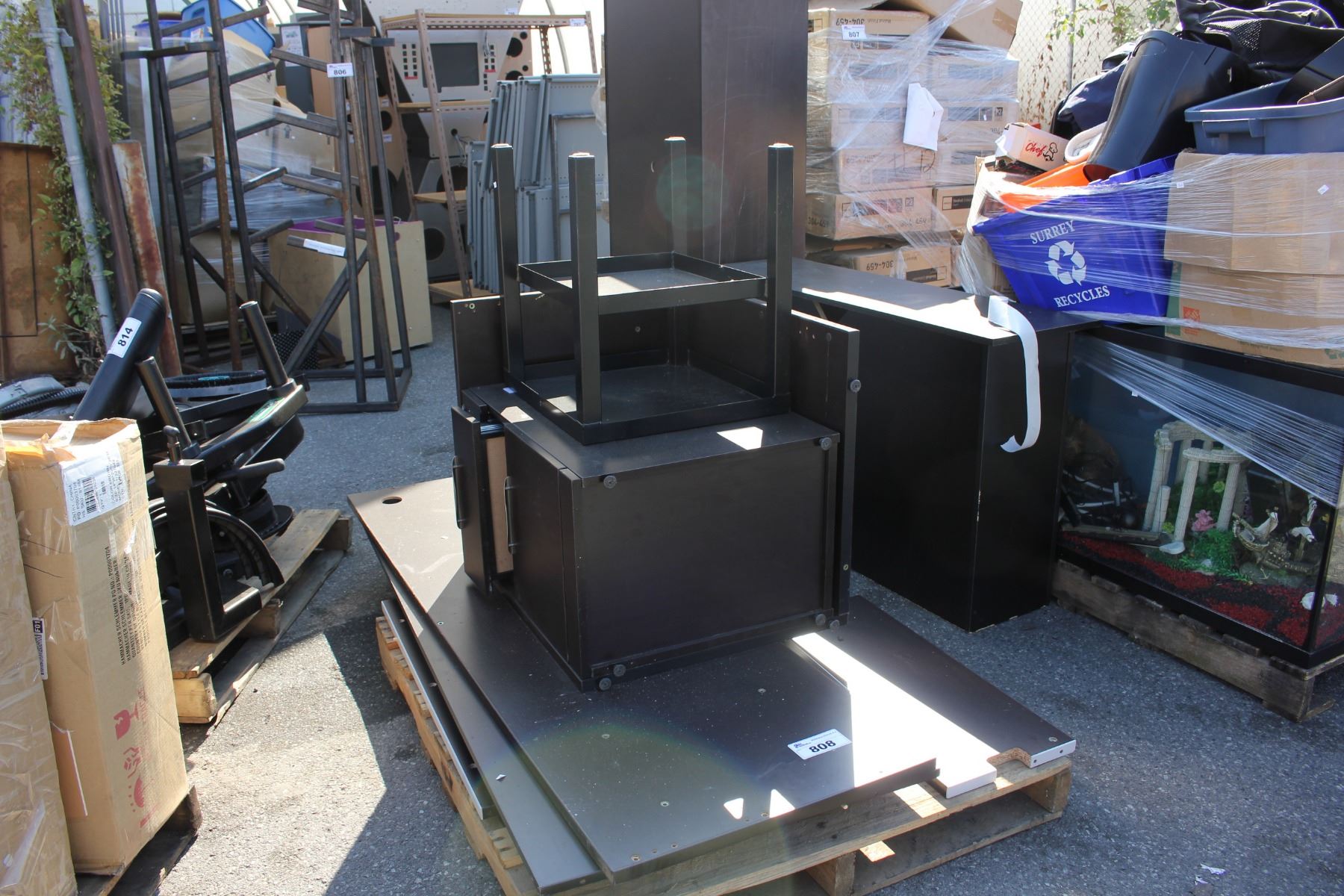 PALLET LOT INCLUDING OFFICE DESK AND CABINET - UNASSEMBLED, AS IS