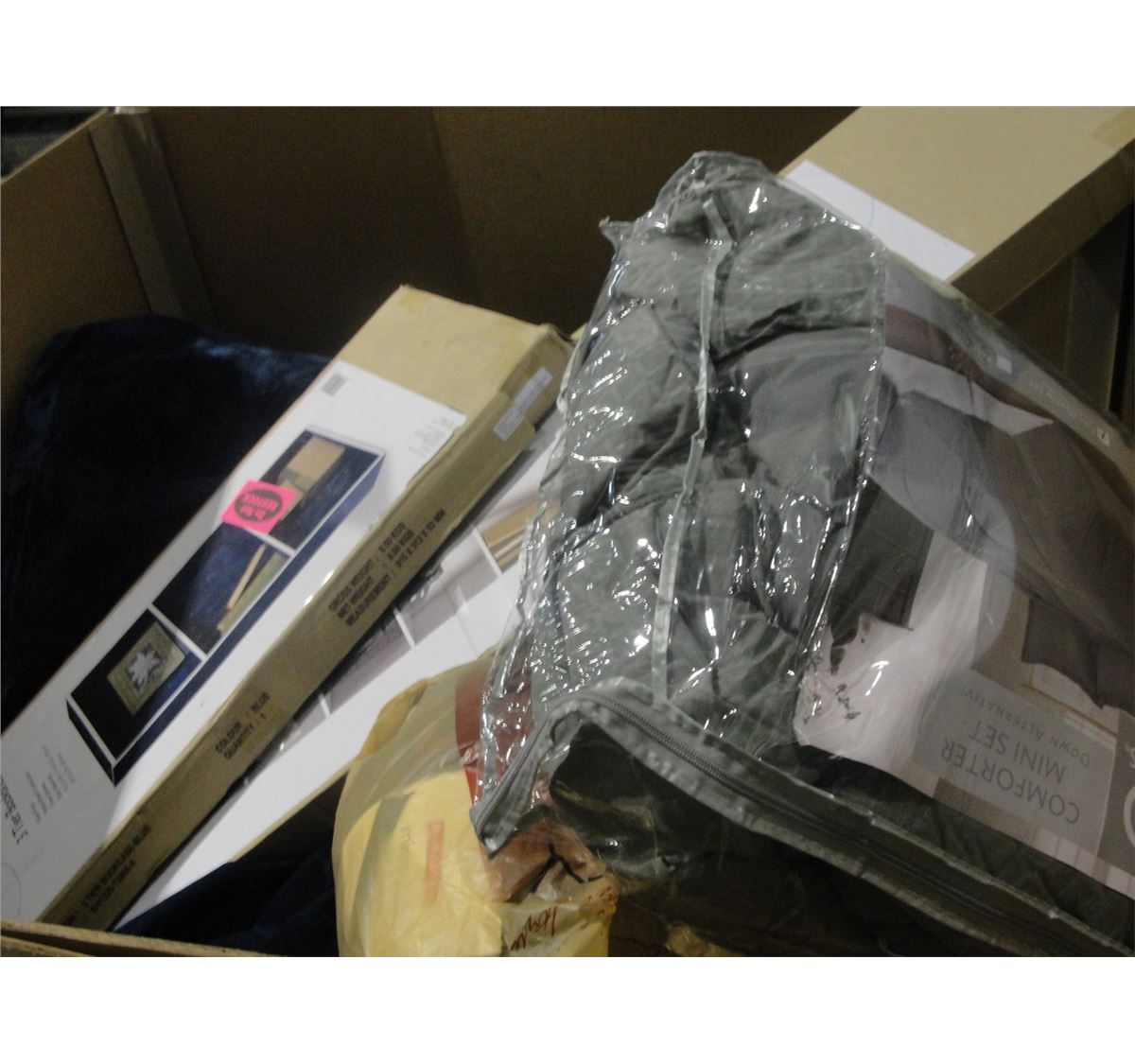 PALLET LOT OF ASSORTED CAMPING EQUIPMENT, BLANKETS, PILLOWS, TOWELS, ETC