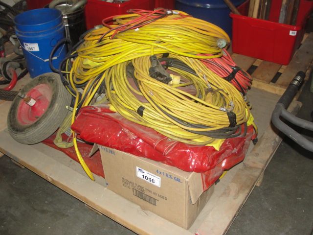 PALLET LOT OF ASSORTED CONSTRUCTION SITE POWER CORDS, WELDING CURTAINS ETC