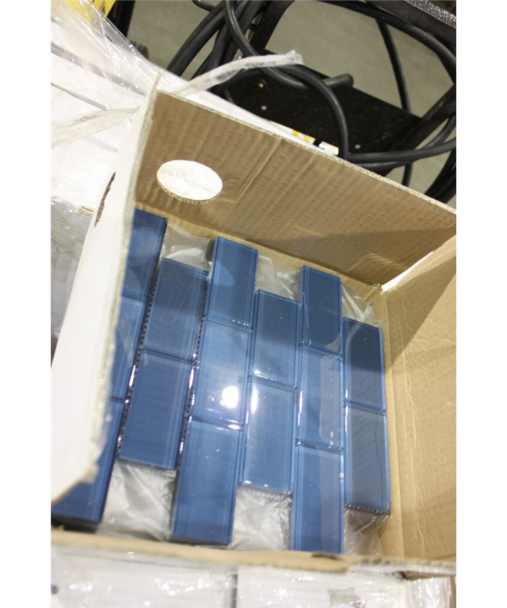 PALLET LOT OF ASSORTED GLASS TILE; 24"X24" CREMA COMPOSITE TILE. APPROX 210SQF AND GLASS TILE APPROX 140SQF