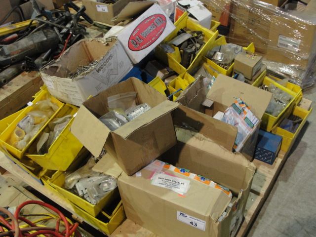 PALLET LOT OF ASSORTED HARDWARE; NUTS, BOLTS, WASHERS, SCREWS, COTTER PINS ETC