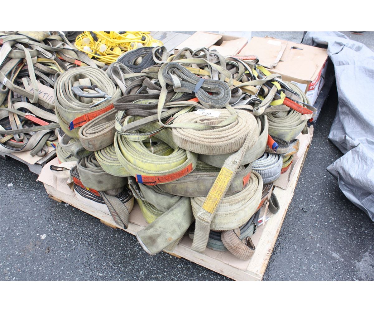 PALLET LOT OF ASSORTED LIFT LINE BELTS  AND STRAPPING