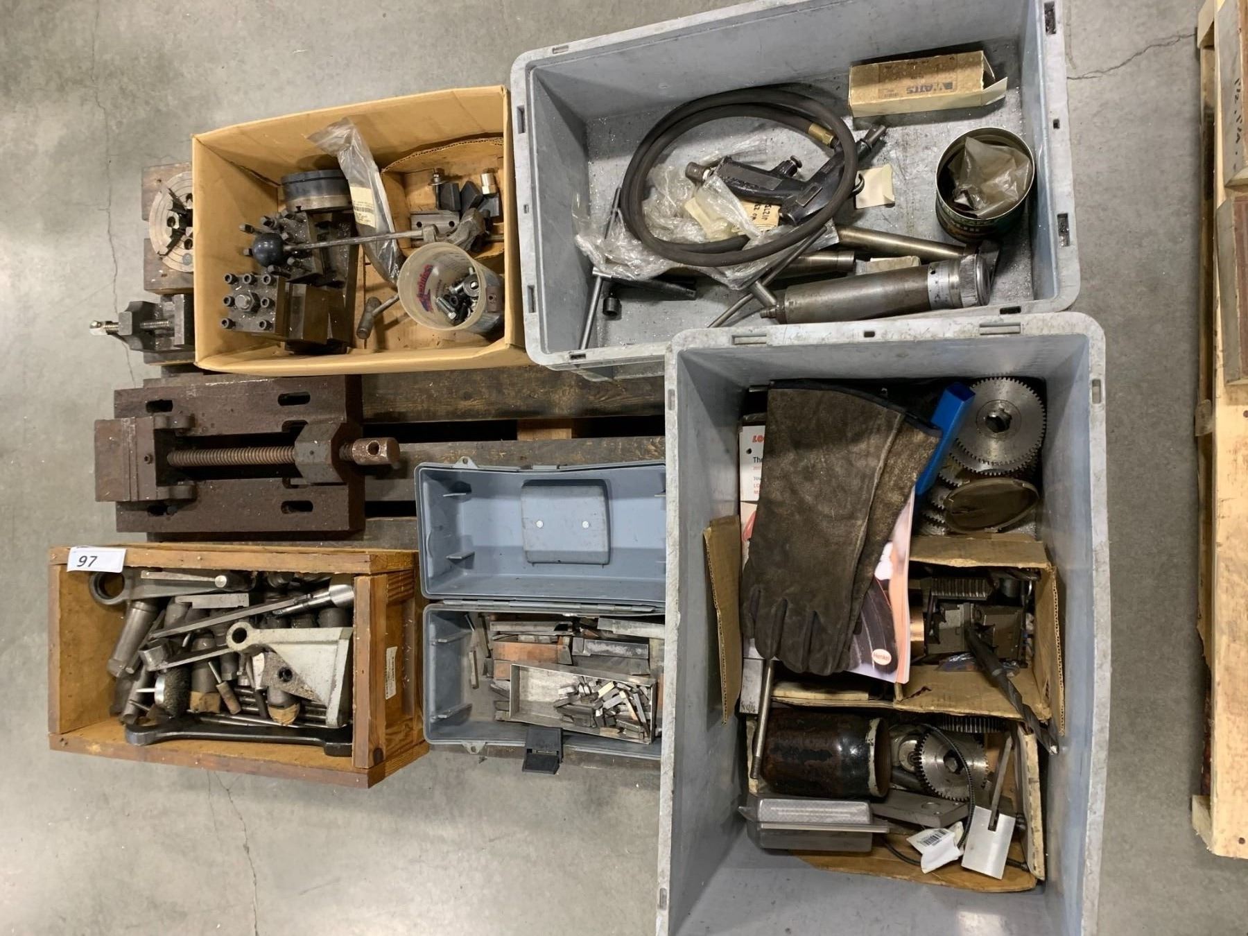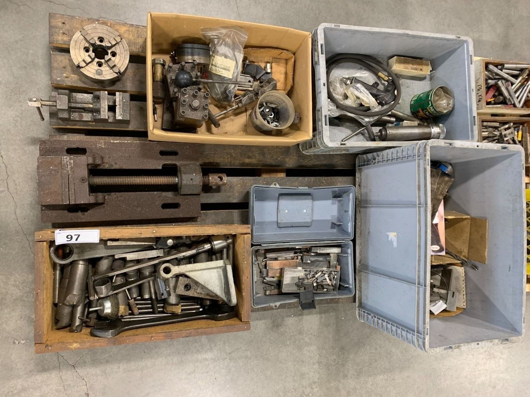 PALLET LOT OF ASSORTED MACHINE SHOP TOOLS, PARTS. HARDWARE & MORE