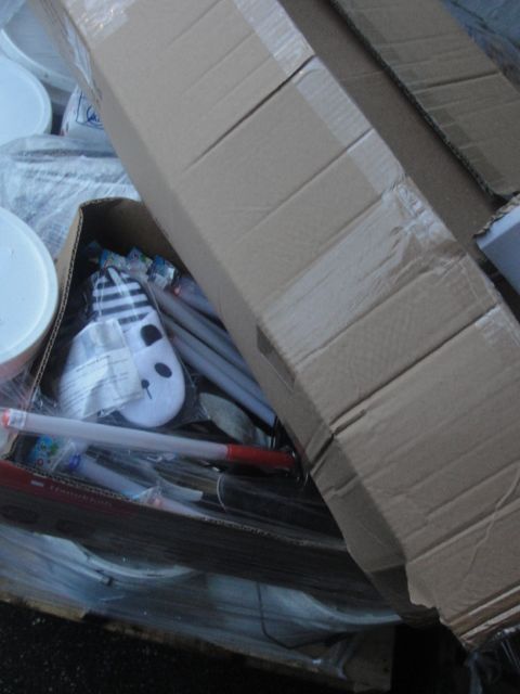 PALLET LOT OF ASSORTED MISC ITEMS; PIE FILLING, BBQ BRIQUETTES ETC