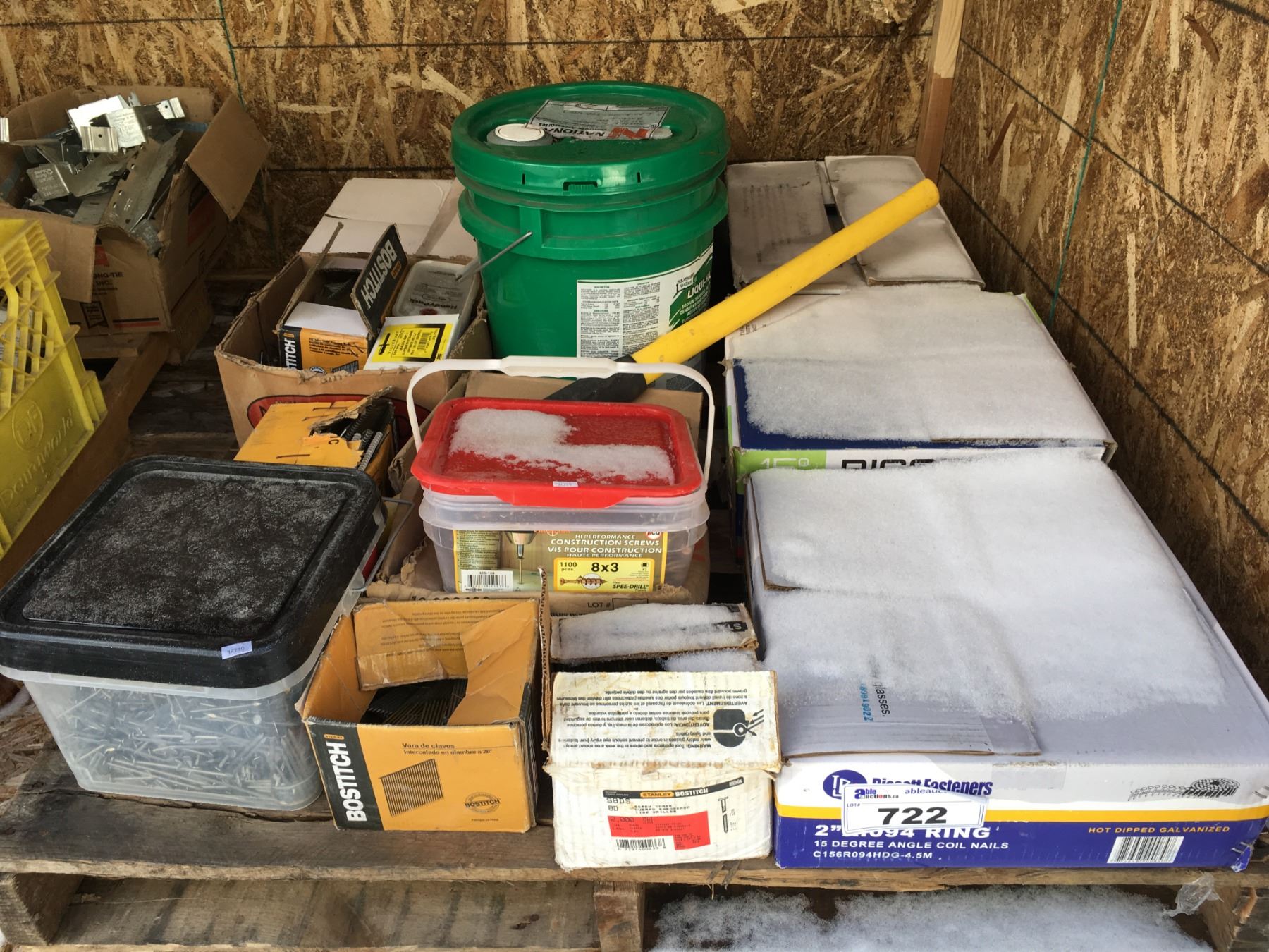 PALLET LOT OF ASSORTED NAILS/ FASTENERS/ CONSTRUCTION ITEMS