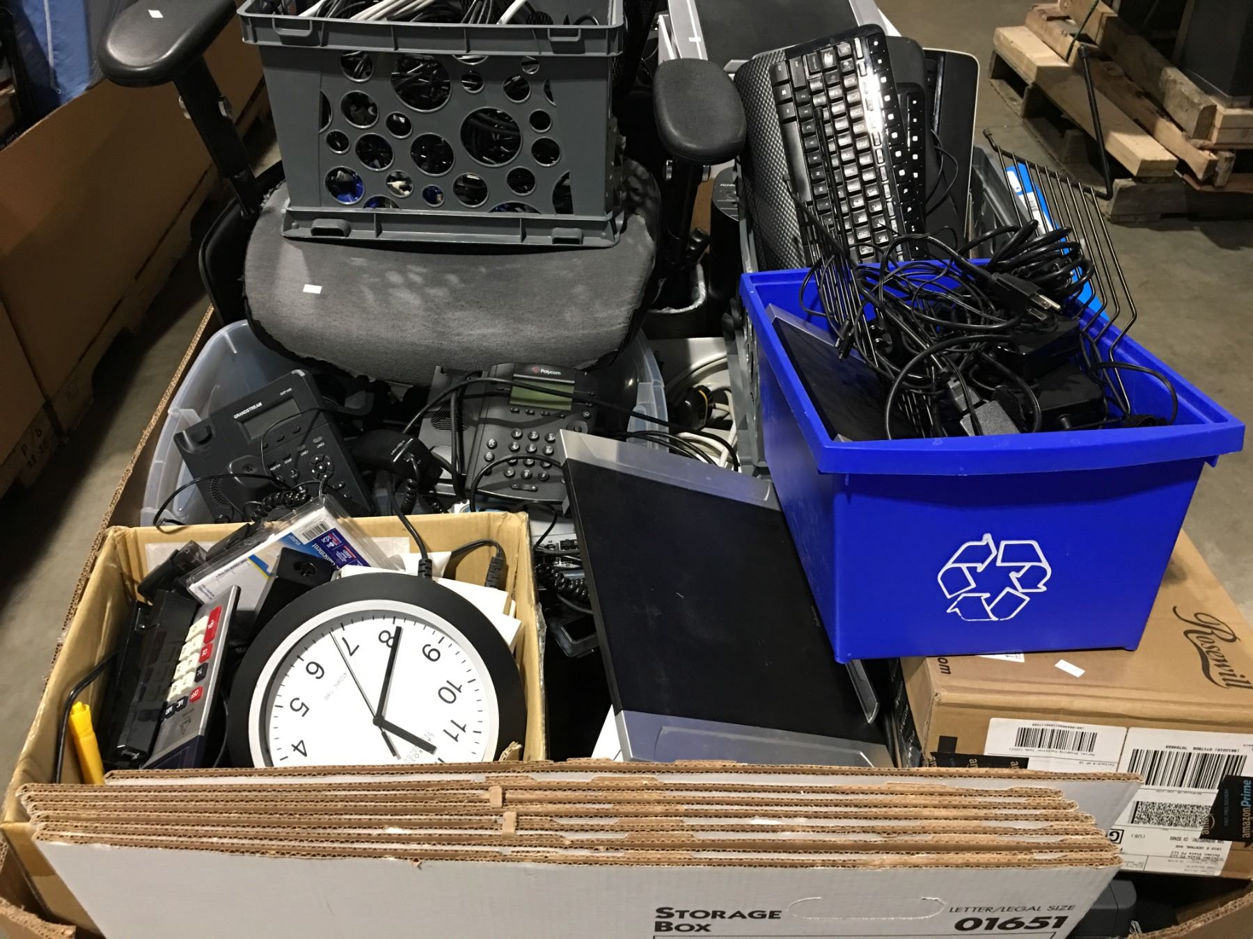 PALLET LOT OF ASSORTED OFFICE EQUIPMENT/SUPPLIES & MISCELLANEOUS ITEMS