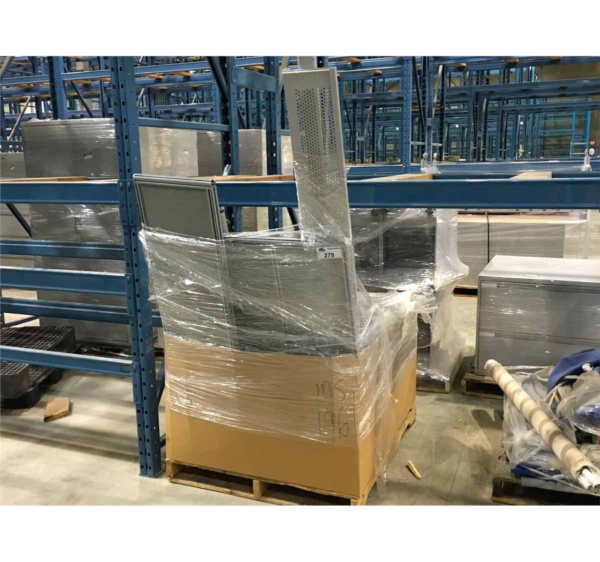 PALLET LOT OF ASSORTED OFFICE FURNITURE FILE PEDESTALS AND CUBICLE PARTS