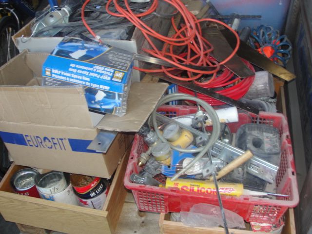 PALLET LOT OF ASSORTED SHOP TOOLS, HARDWARE AND MISC