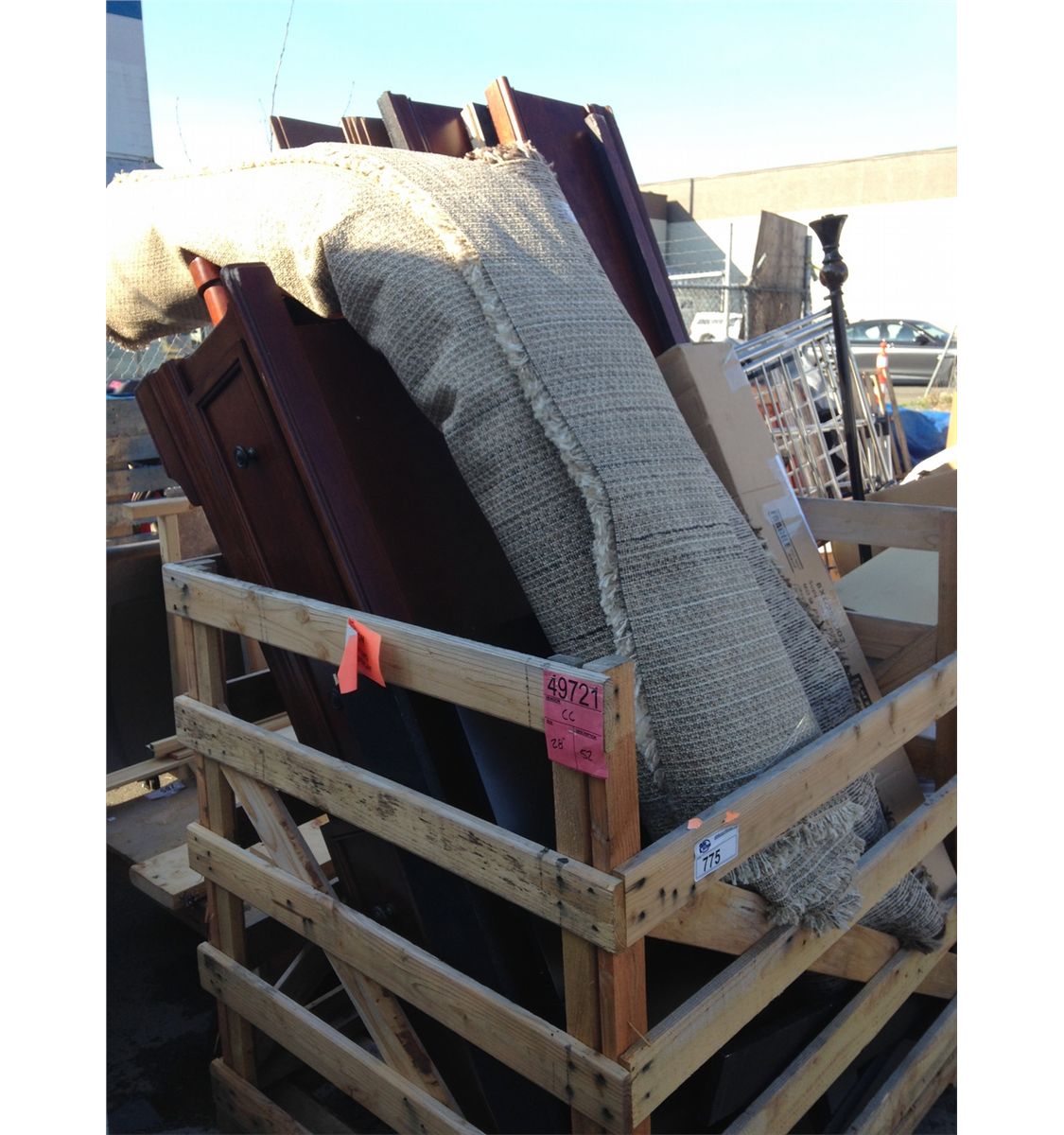 PALLET LOT OF ASSORTED STORE RETURN FURNITURE; FURNITURE PARTS, 2 SHAG RUGS, ETC