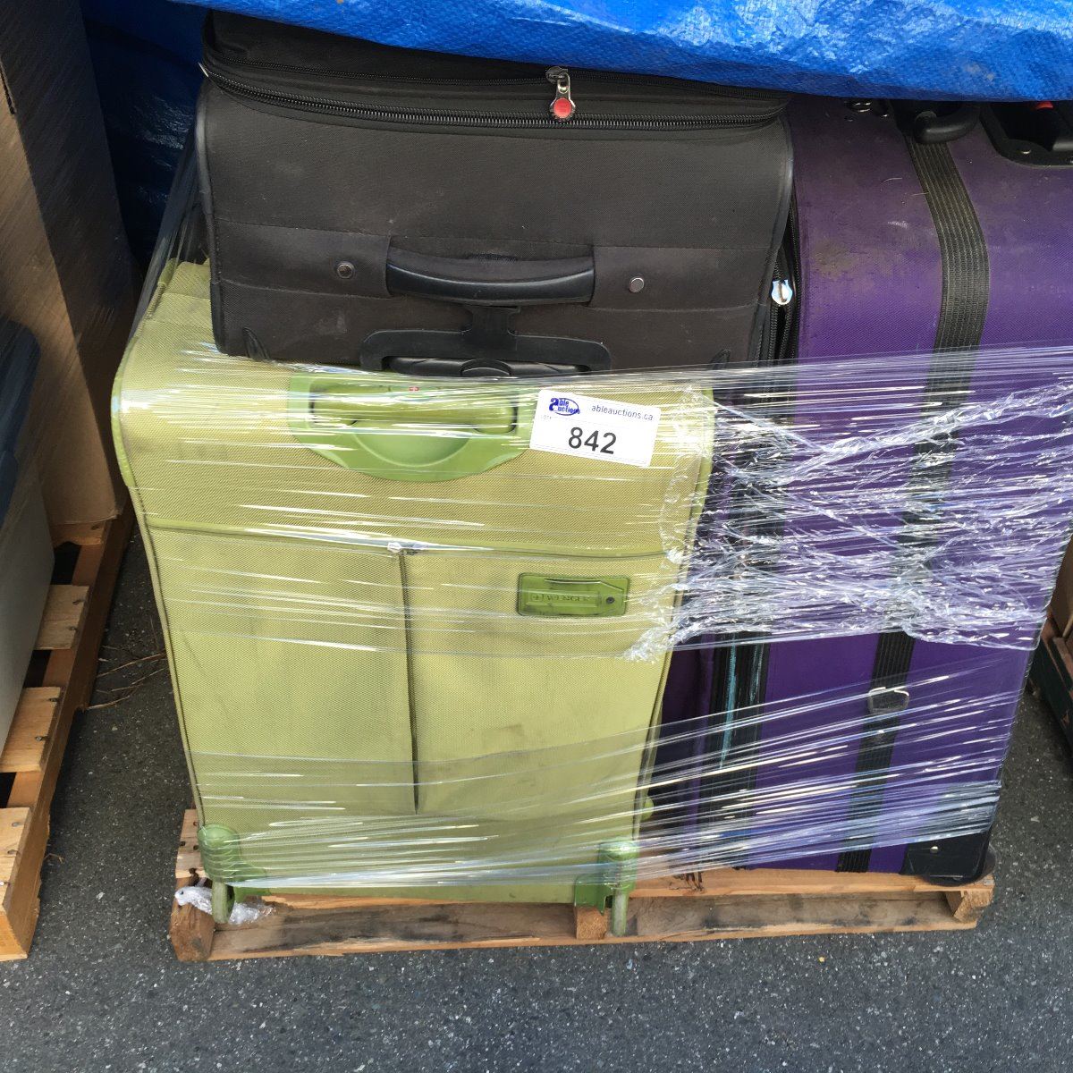 PALLET LOT OF ASSORTED SUITE CASES FILLED WITH CLOTHING ( WINNING BIDDER MUST REMOVE ENTIRE CONTENTS OF PALLET)