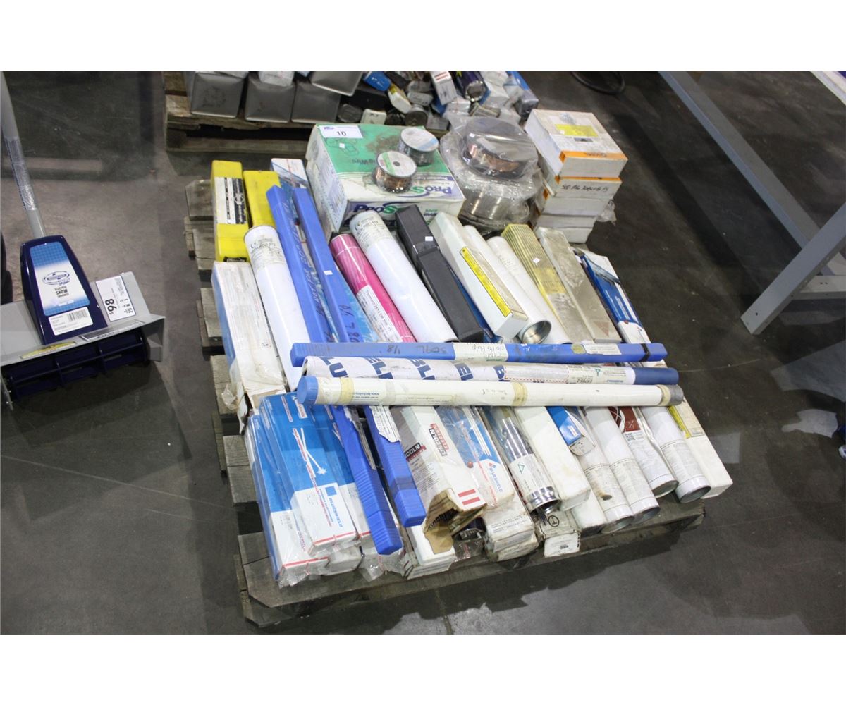 PALLET LOT OF ASSORTED WELDING RODS, WELDING WIRE, AND COVERED ELECTRODES