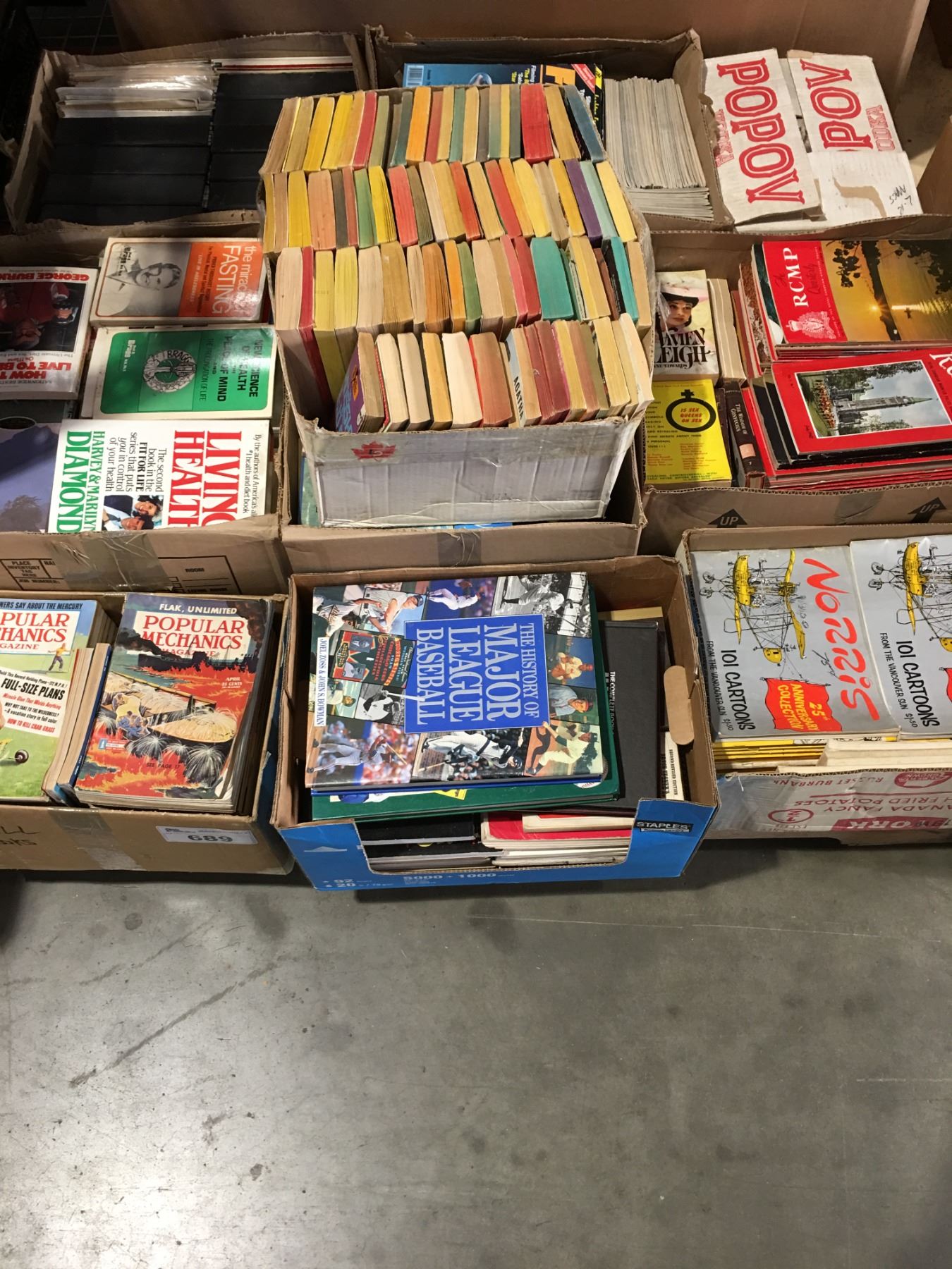 PALLET LOT OF ASSTD BOOKS & EARLY MAGAZINE - POPULAR MECHANICS, RCMP ECT