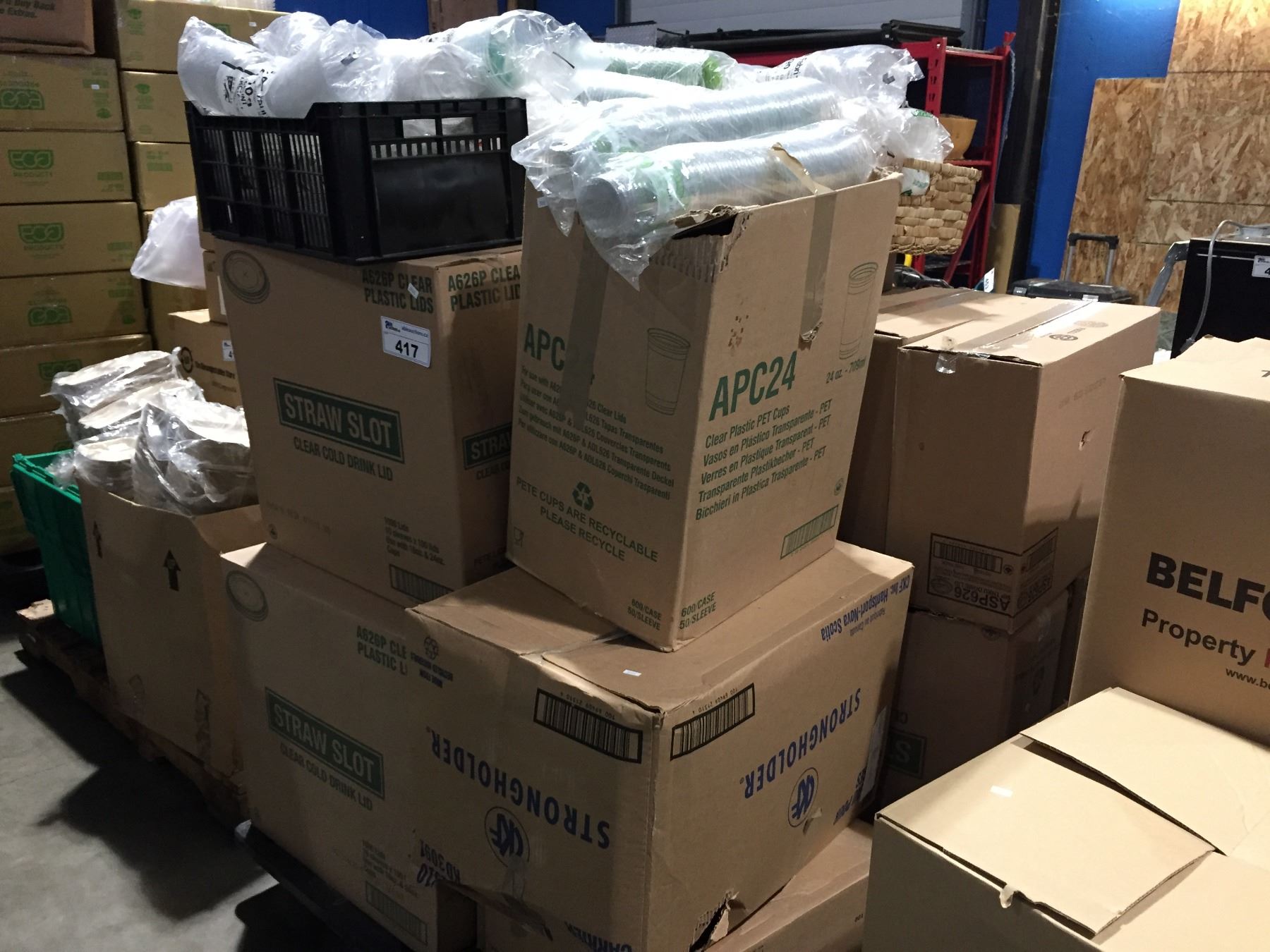 PALLET LOT OF ASSTD LOGOED DISPOSABLE CUPS & LIDS