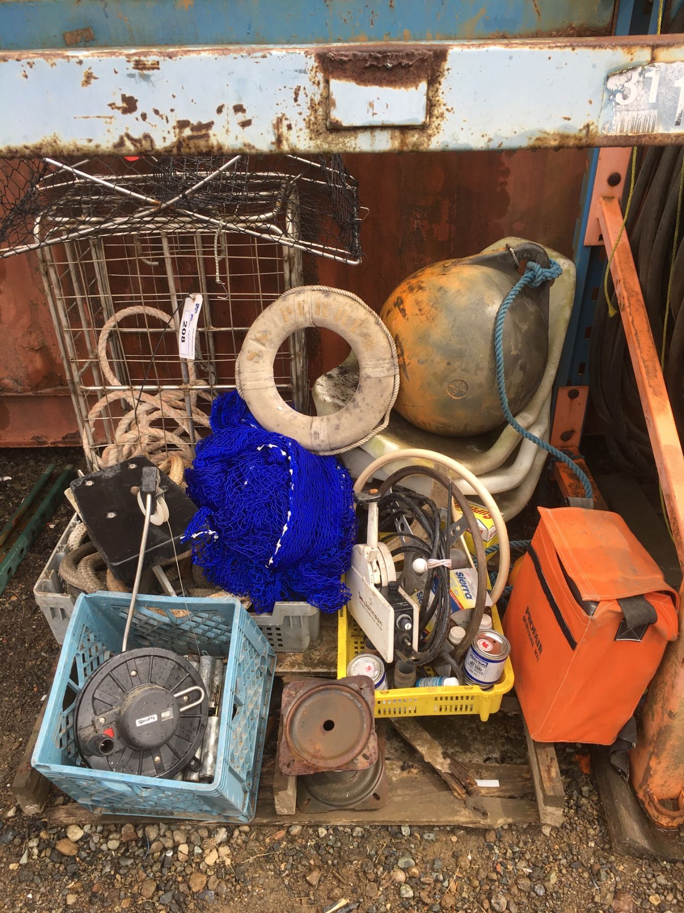 PALLET LOT OF ASSTD. MARINE & BOATING ITEMS, CRAB TRAP, SCOTTY MOUNT, DOWNRIGGER, SURVIVAL KIT ECT.
