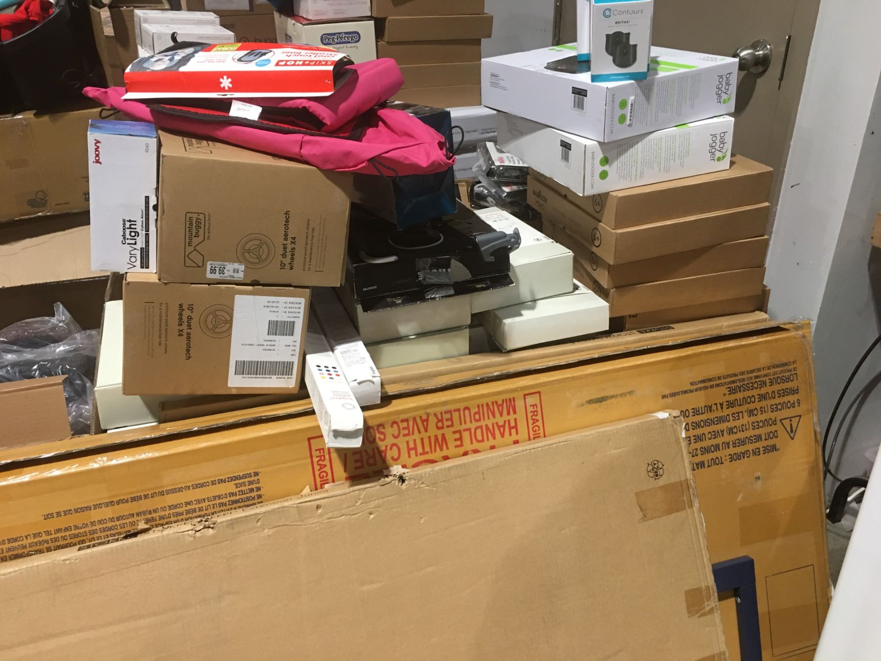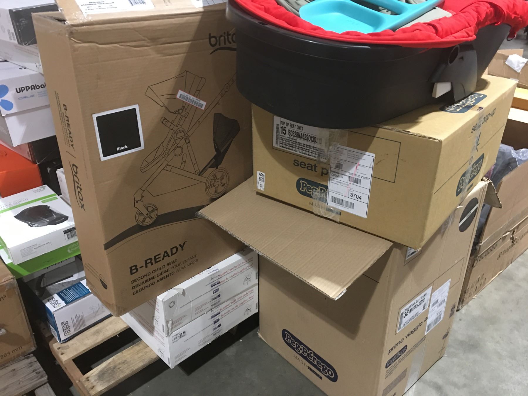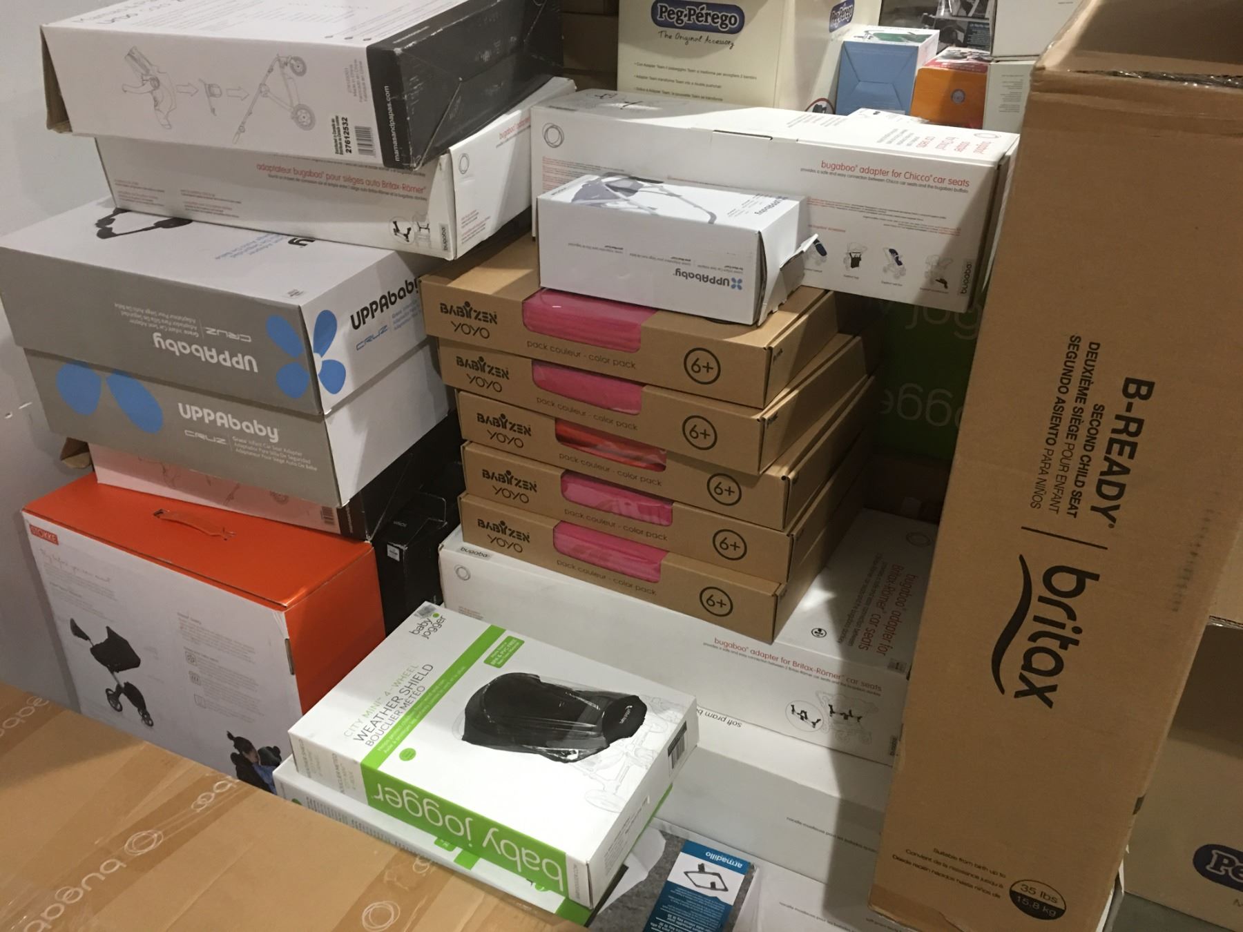 PALLET LOT OF ASSTD MIS-MATCHED STROLLER COMPONENTS - COVERS - LINERS ECT