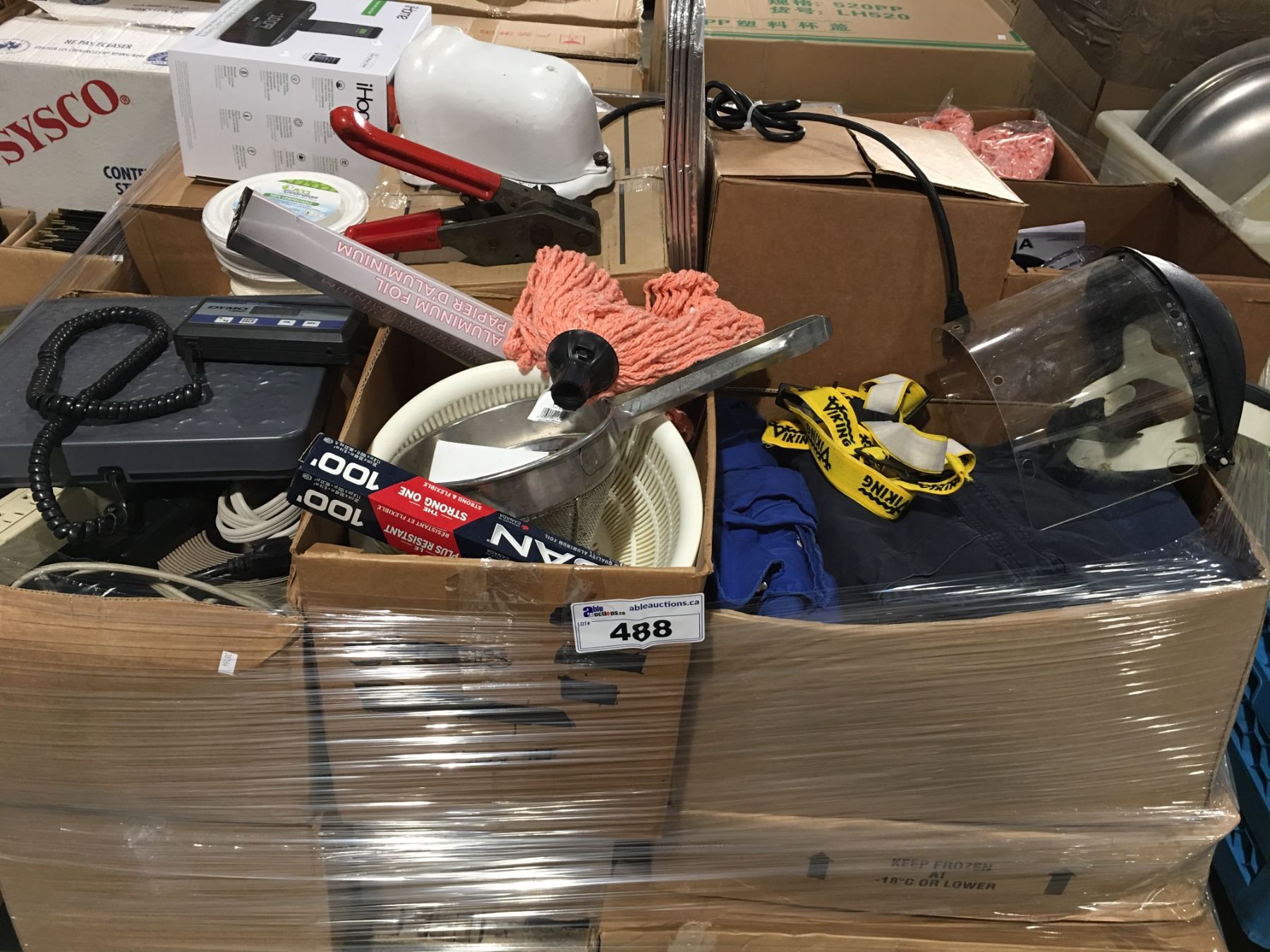 PALLET LOT OF ASSTD MISC. ITEMS FOOD IND. ITEMS/TOOLS/ELECTRONICS ETC.