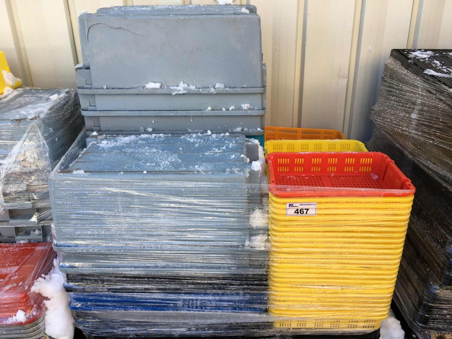 PALLET LOT OF ASSTD PLASTIC STORAGE BINS & BASKETS