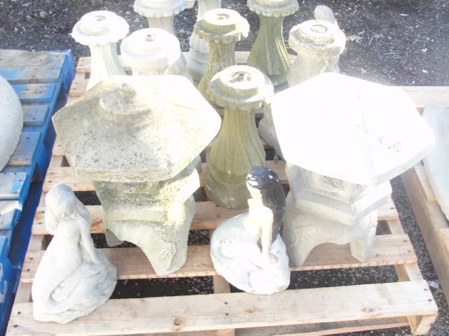 PALLET LOT OF CONCRETE DECORATIVE GARDEN ORNAMENTS; PAGODAS ETC - 13PCS