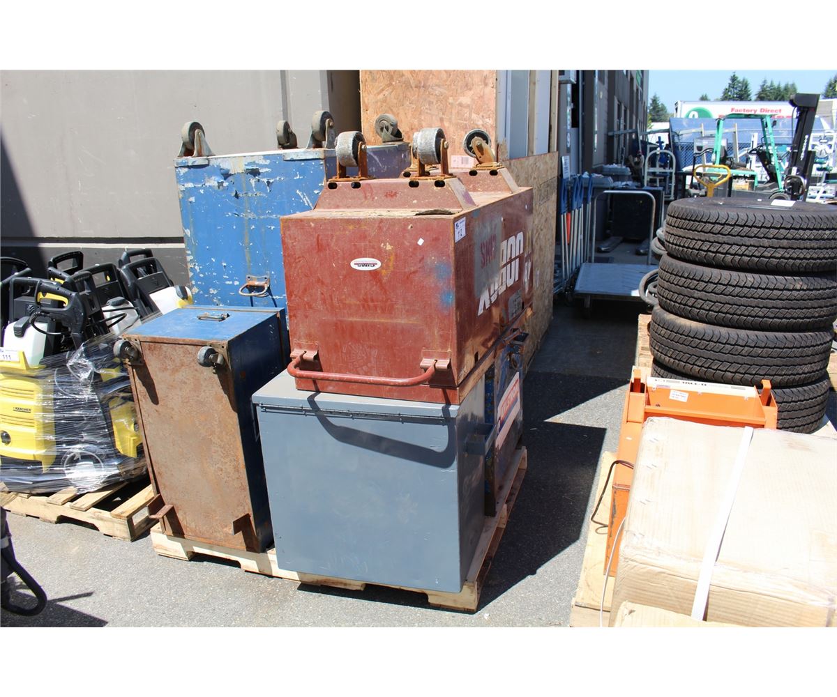 PALLET LOT OF JOBSITE METAL TOOL STORAGE BOXES
