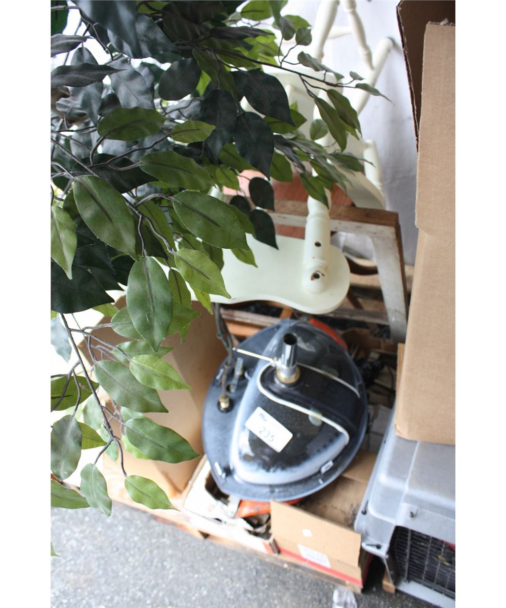 PALLET LOT OF MISC ITEMS INCLUDING TABLE, CHAIRS, ARTIFICIAL PLANTS, SINK ETC