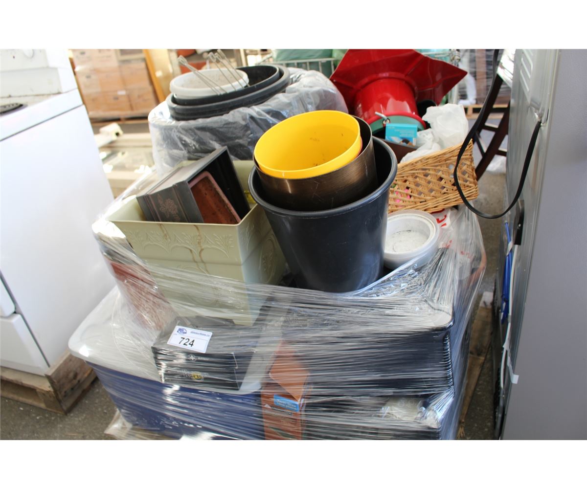 PALLET LOT OF MISC ITEMS; PLANTERS, GENERAL HOUSEHOLD ITEMS, ETC