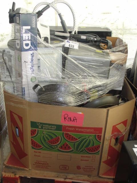 PALLET LOT OF MISC MICROWAVES, POTS AND PANS, STEAMER, WATER COOLERS AND MORE