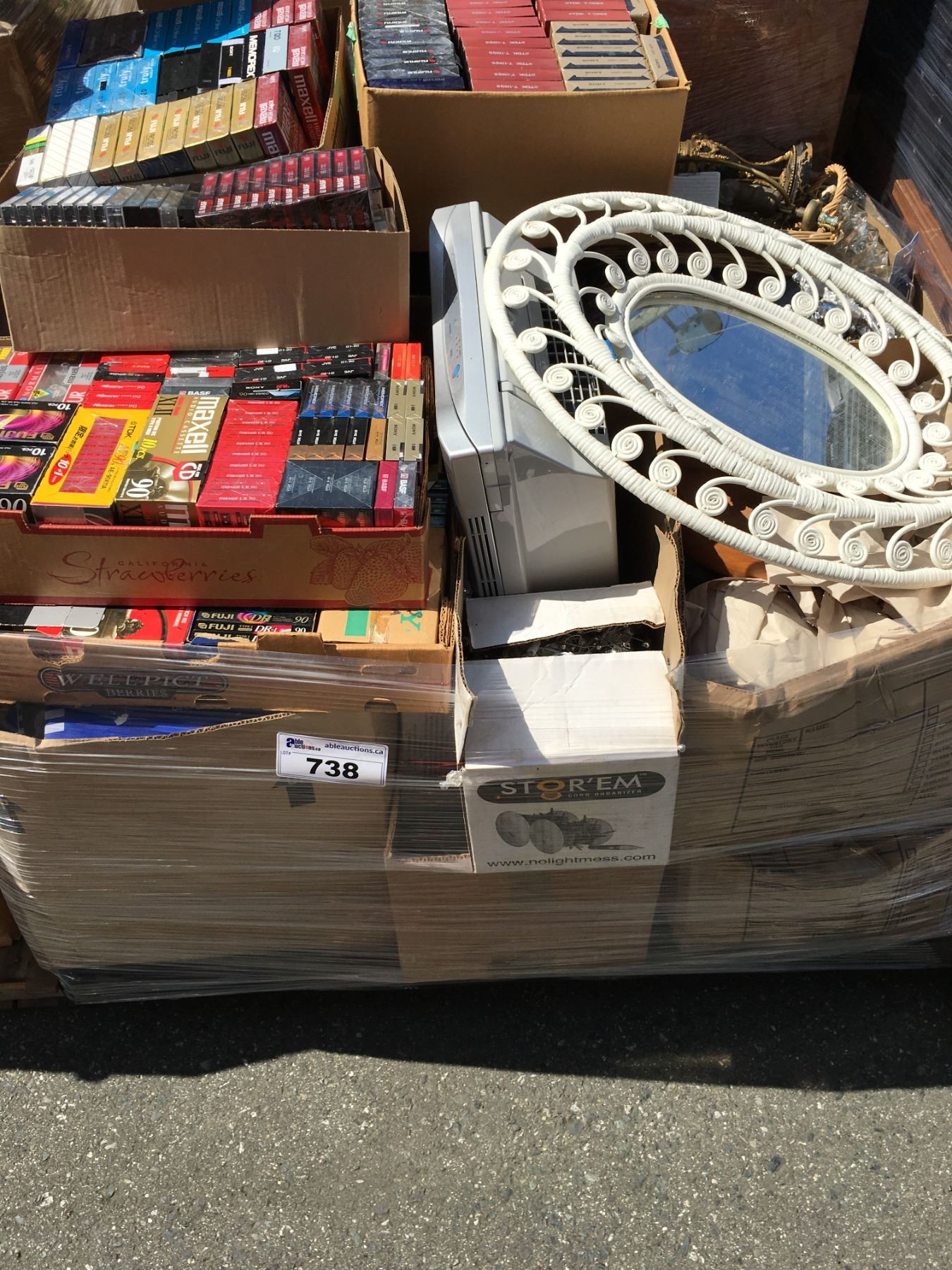 PALLET LOT OF MISC. TAPES, HOUSEHOLD ITEMS ECT.