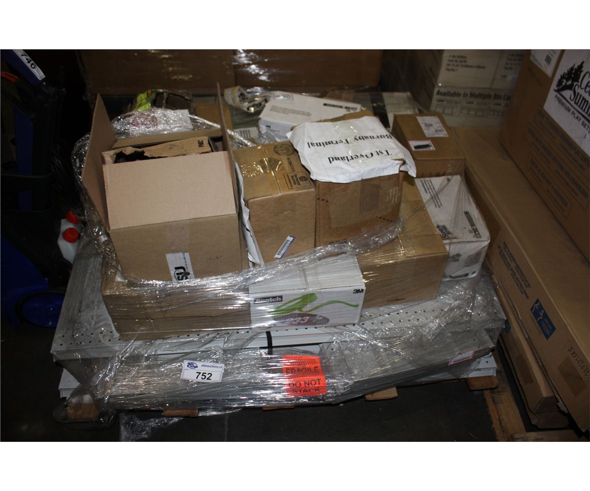 PALLET LOT OF NEW PRODUCT; SCOTCHBRITE TAPE AND SHELVING ETC