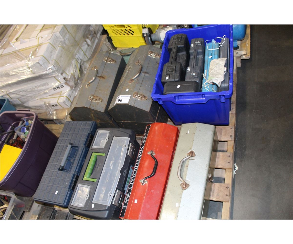 PALLET LOT OF TOOLBOXES FULL OF ASSORTED TOOLS