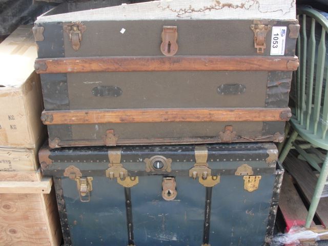PALLET LOT OF VINTAGE TRUNKS AND MISC ITEMS