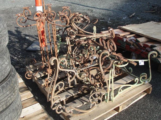 PALLET LOT OF WROUGHT IRON CANDLE HOLDERS, TABLE BASES, ETC