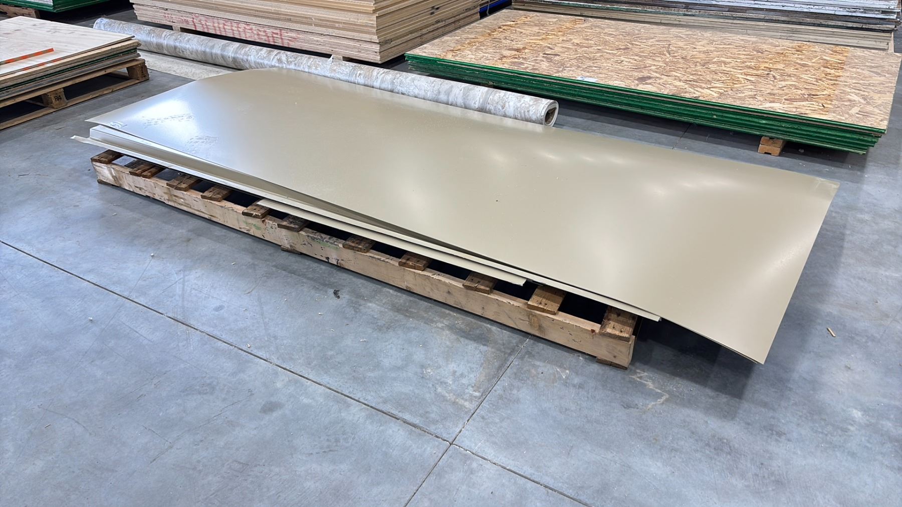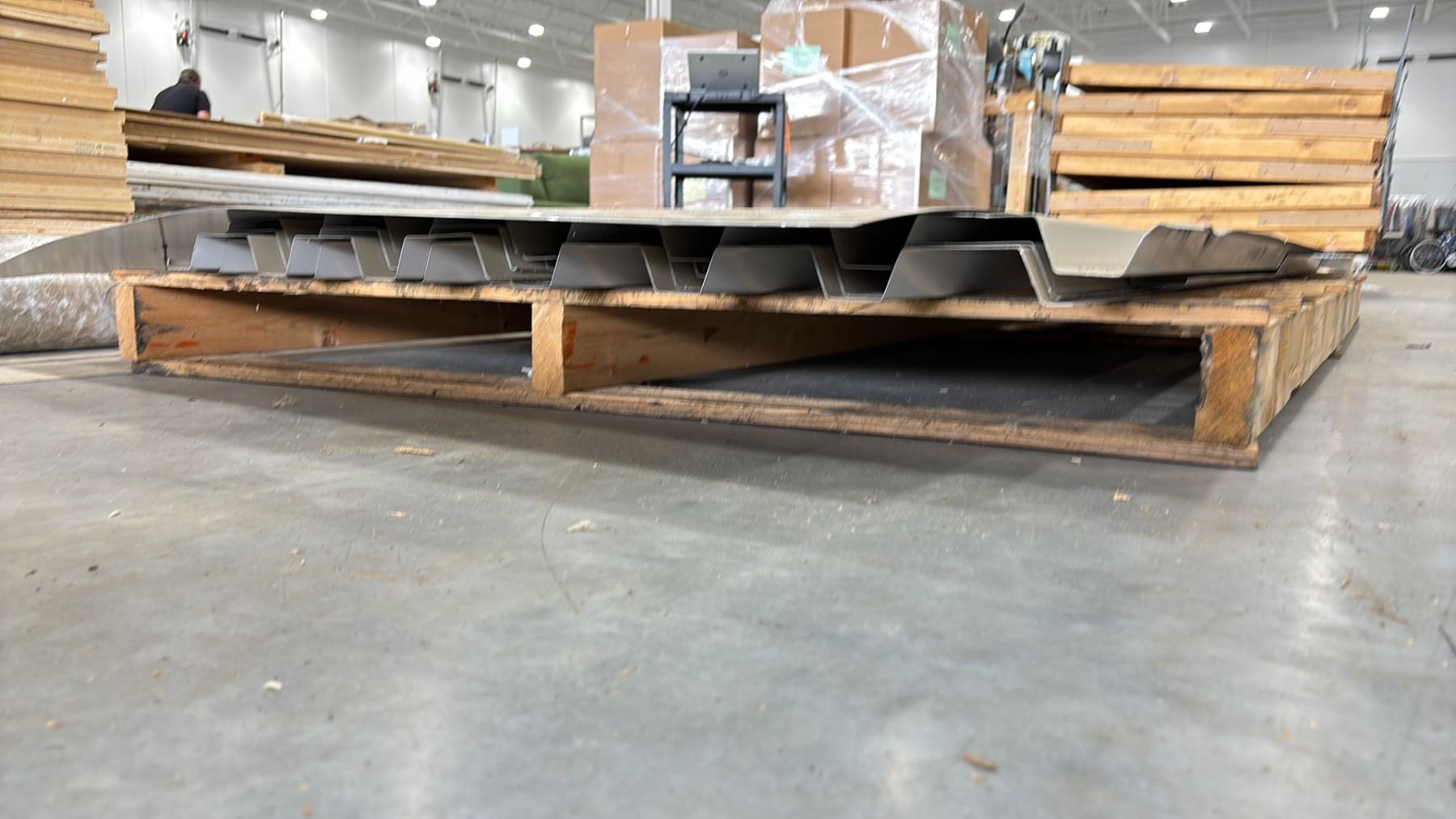 PALLET OF 10'L X 4'L FLAT METAL SIDING PANELS & ASSORTED SIZE RIDGED METAL SIDING PANELS