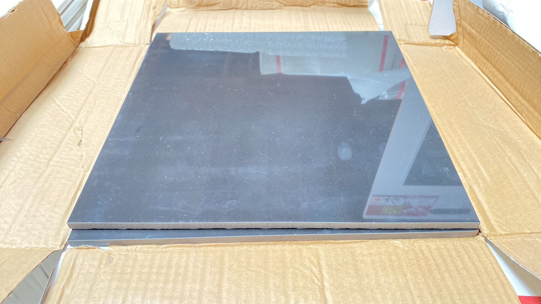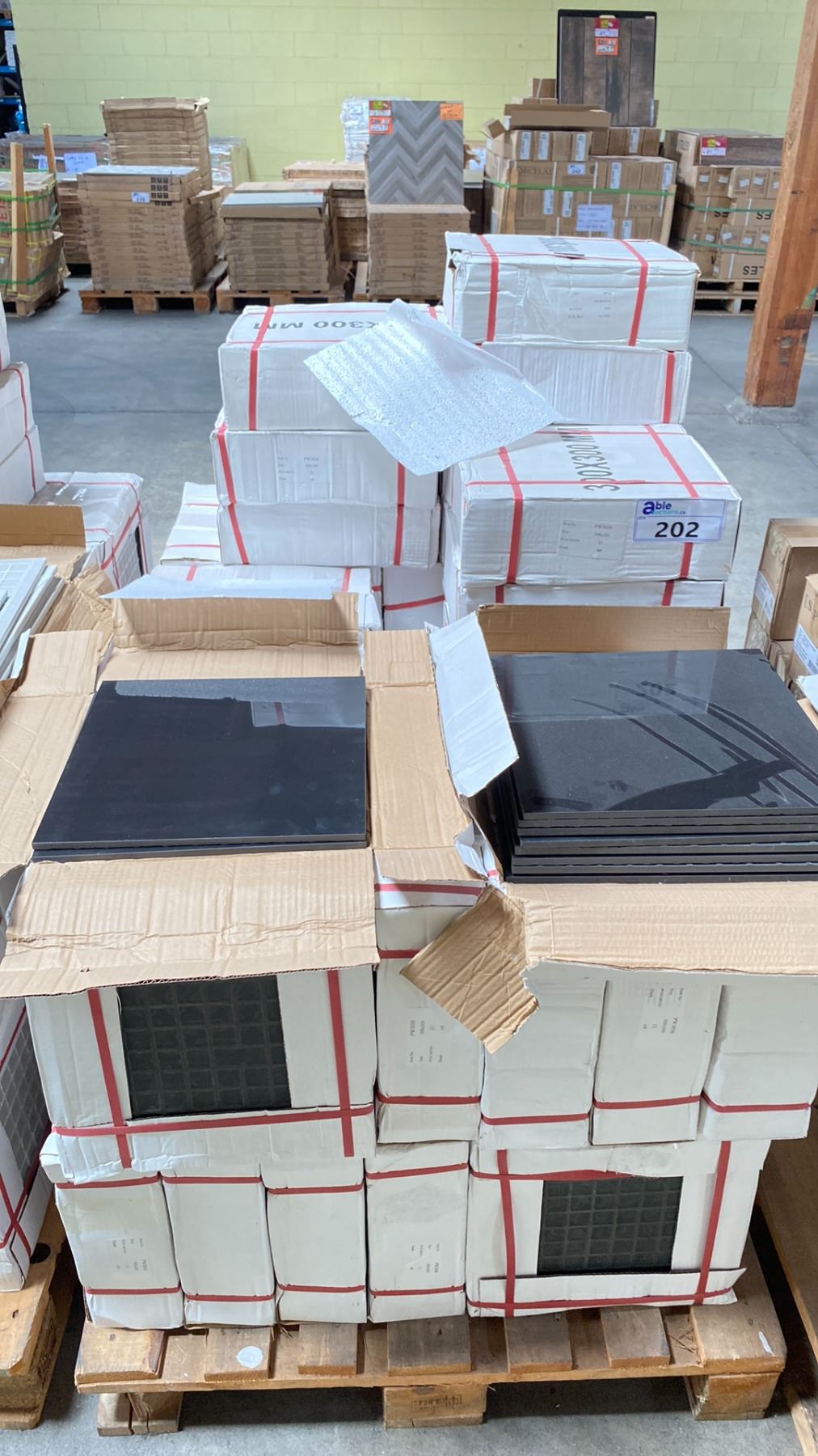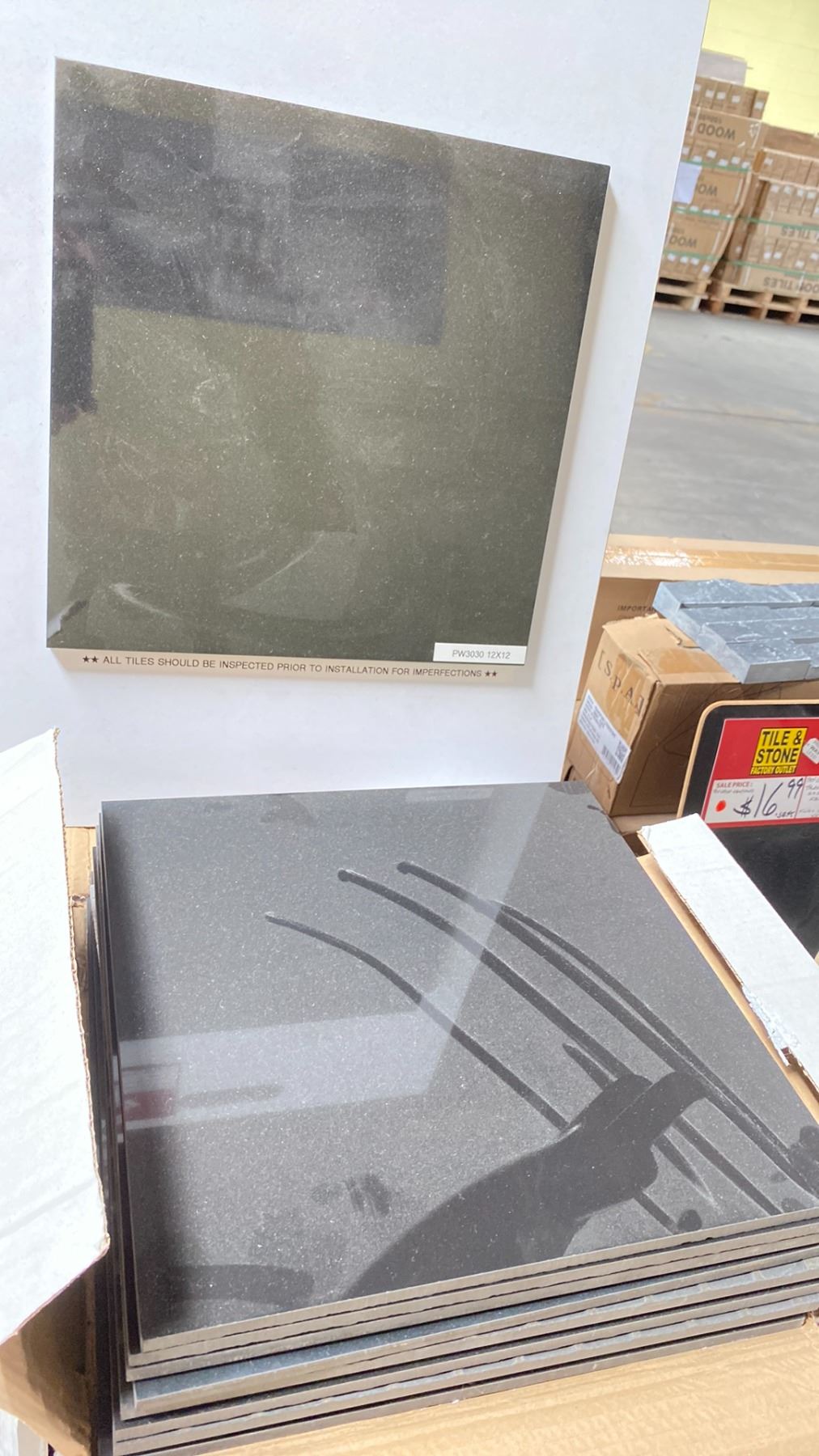 PALLET OF 12 X 12" PORCELAIN TILE IN POLISHED BLACK 11SQ.FT. PER BOX, APPROX 55 BOXES, APPROX 605SQ.FT. TOTAL