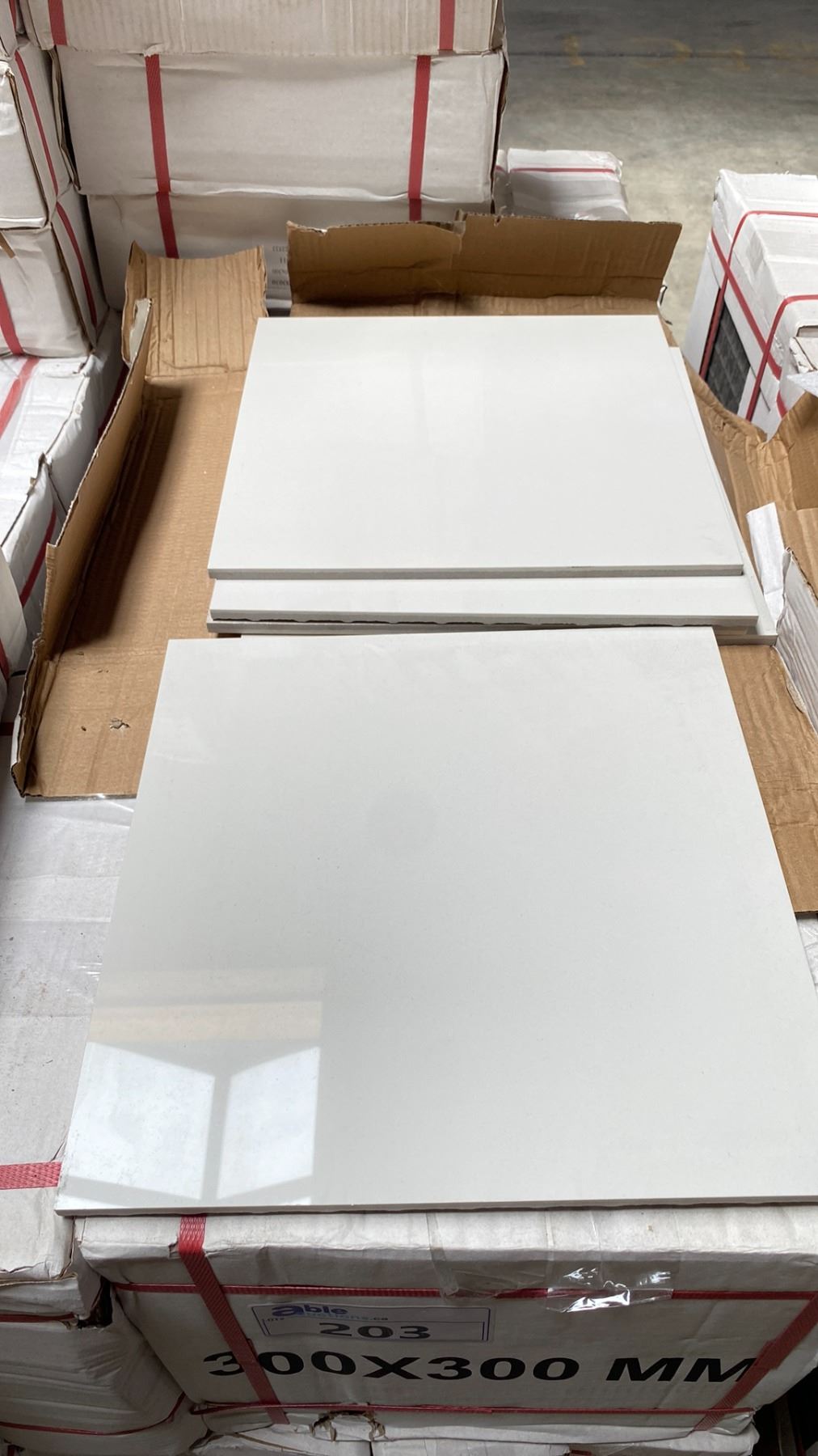 PALLET OF 12 X 12" PORCELAIN TILE IN POLISHED WHITE 11SQ.FT. PER BOX, APPROX 53 BOXES, APPROX 583SQ.FT. TOTAL