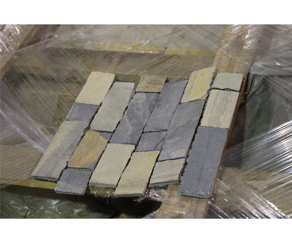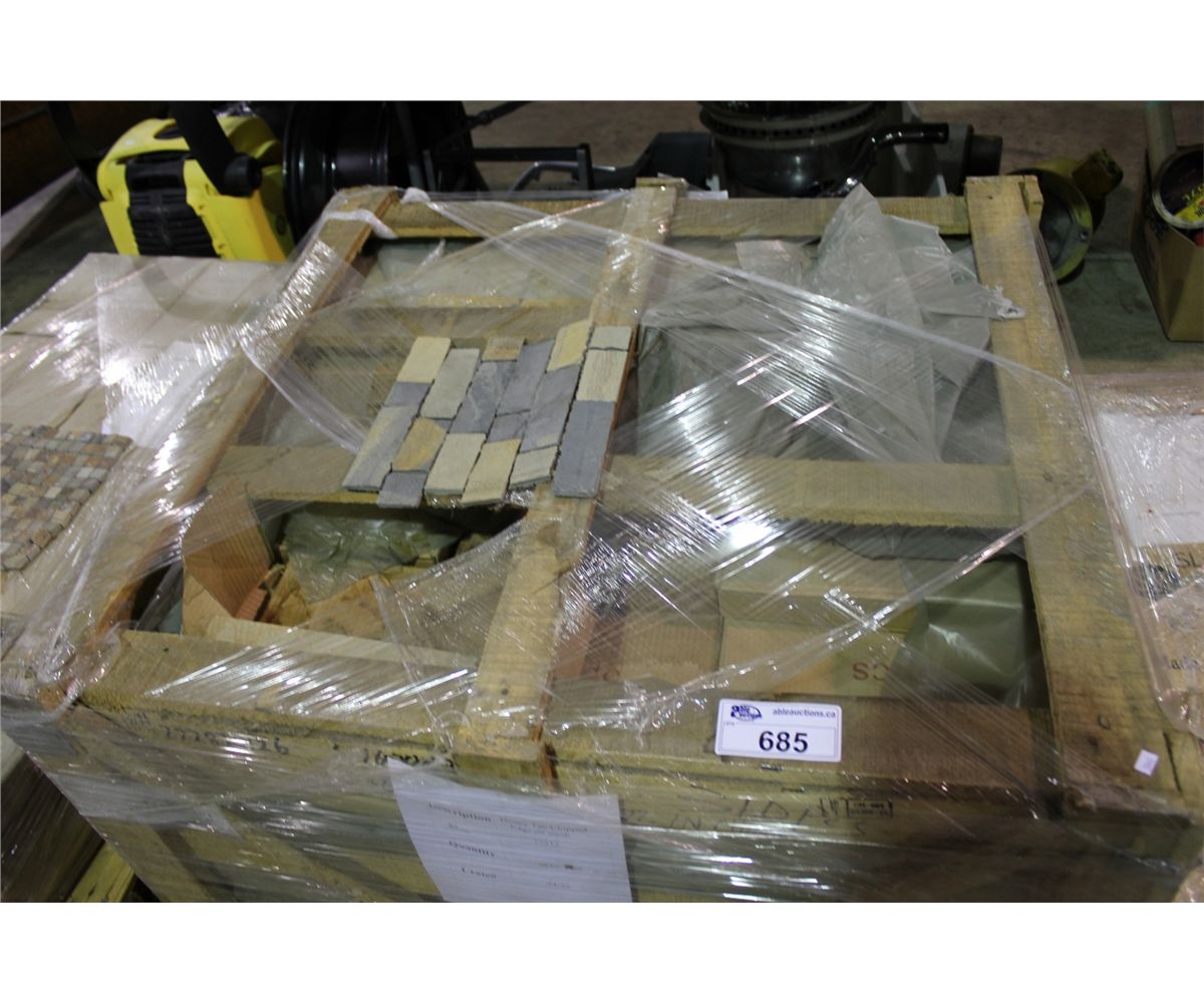 PALLET OF 12 X 12 SHEETS OF HONEY TAN CHIPPED EDGE SLATE MOSAIC WALL TILE