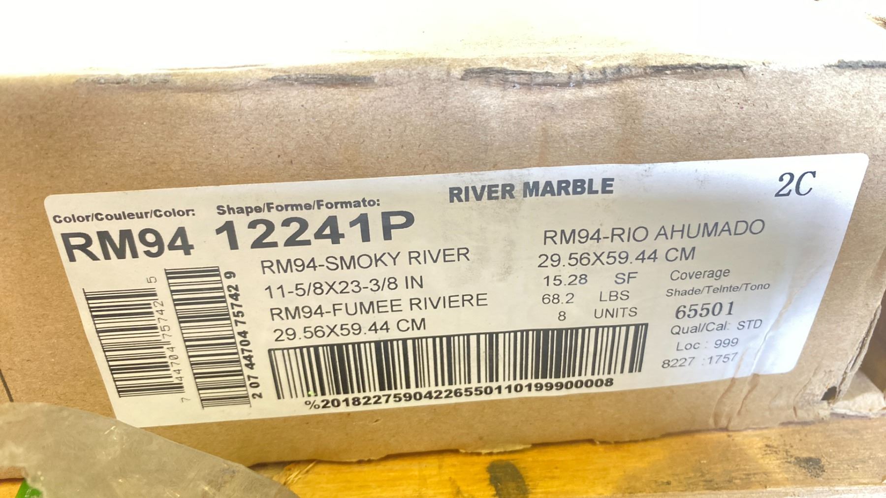 PALLET OF 12 X 24" CERTIFIED PORCELAIN TILES IN SMOKY RIVER, APPROX 16SQ.FT. PER BOX, APPROX 36 BOXES, APPROX 576SQ.FT. TOTAL