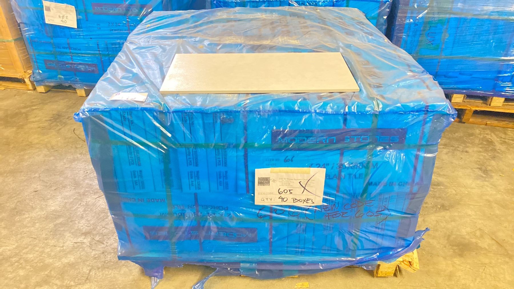 PALLET OF 12 X 24" PORCELAIN TILES IN WHITE 605, 16SQ.FT. PER BOX, APPROX 40 BOXES, APPROX 640SQ.FT.