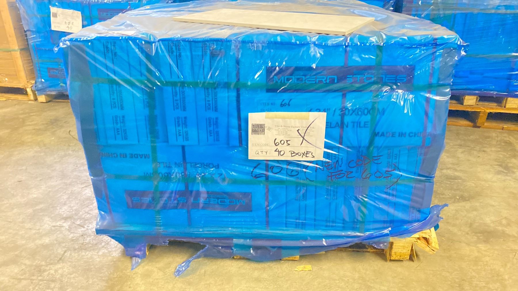 PALLET OF 12 X 24" PORCELAIN TILES IN WHITE 605, 16SQ.FT. PER BOX, APPROX 40 BOXES, APPROX