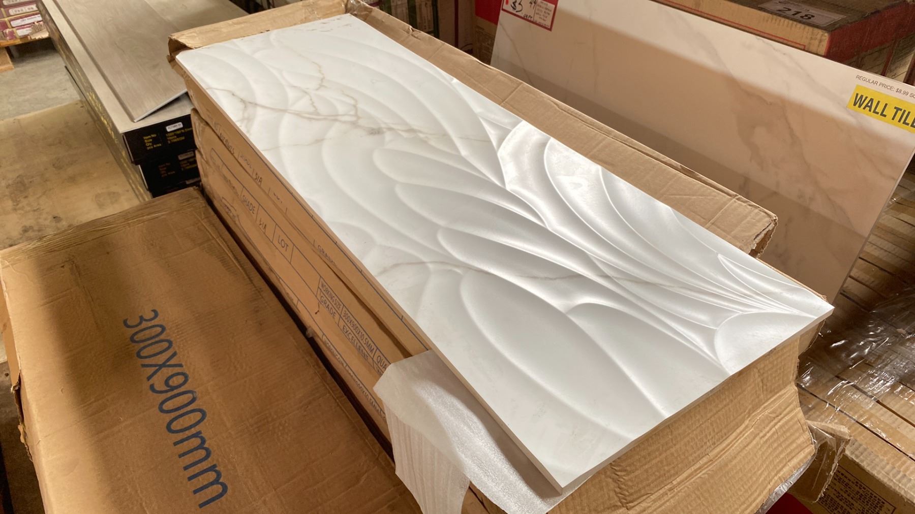 PALLET OF 12 X 36" PORCELAIN TILES IN CALCUTTA WAVE 18SQ.FT. PER BOX APPROX 13 BOXES, APPROX 234SQ.FT. TOTAL