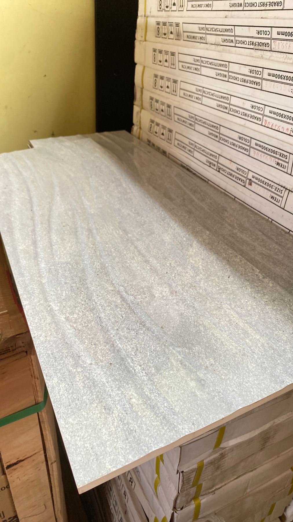 PALLET OF 12 X 36" TEXTURED PORCELAIN TILES IN WAVE GREY 15SQ.FT. PER BOX APPROX 43 BOXES APPROX 645SQ.FT. TOTAL