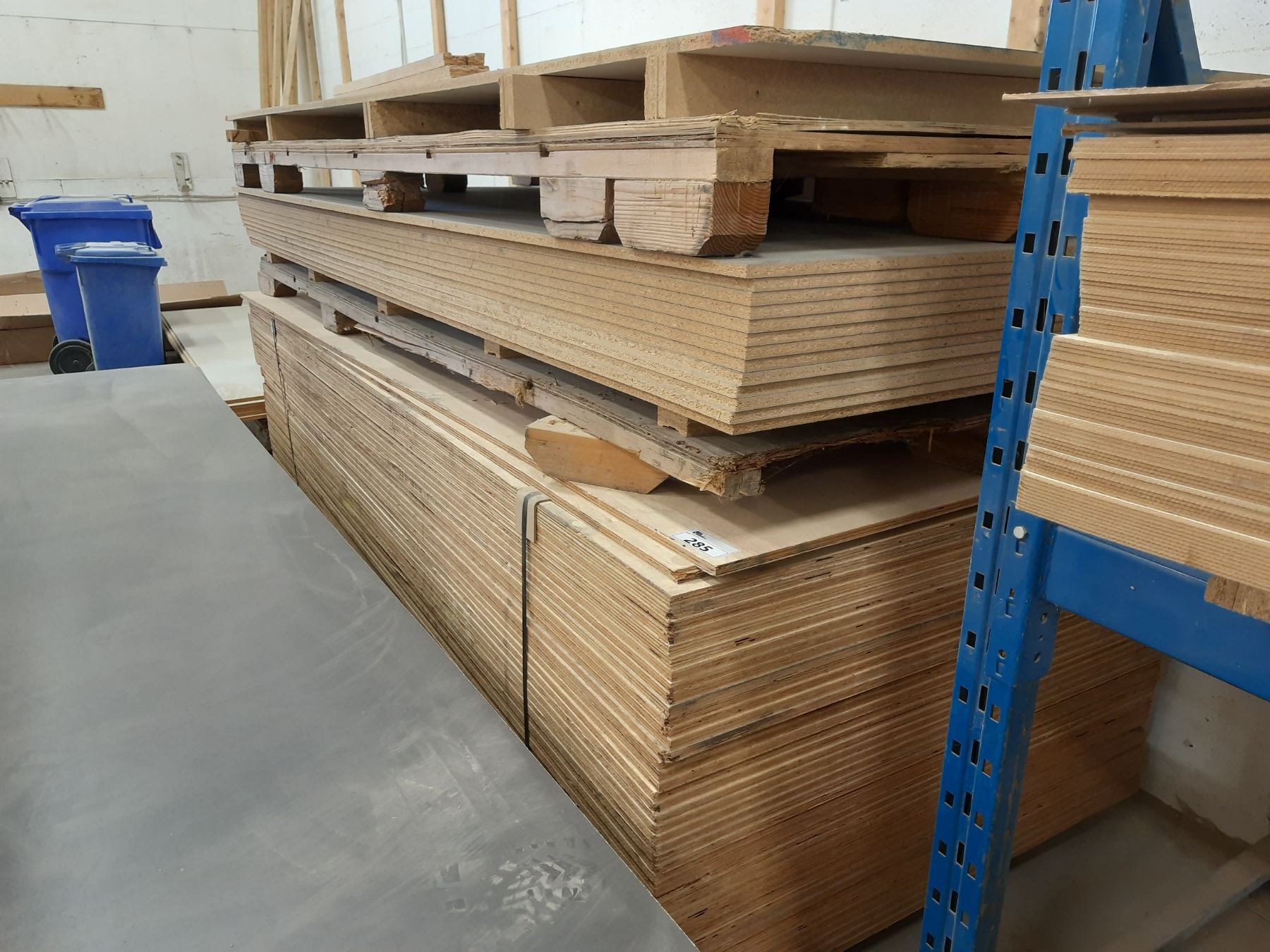 PALLET OF 123" X 50" PLYWOOD 3/4" SHEETS & PALLET OF 123" X 50" BLACK VENEERED 3/4" SHEETS
